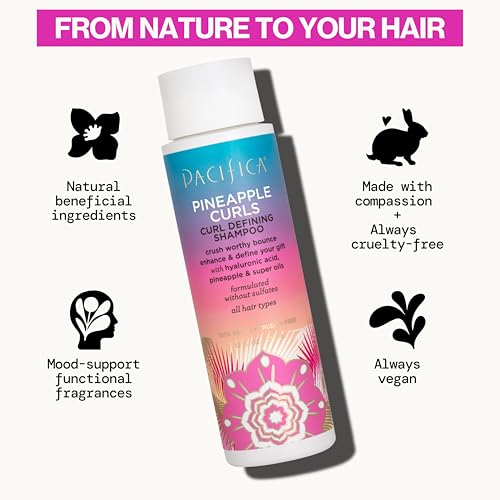 Enhance Your Natural Curls: Give your curly hair the nourishment and definition it craves with Pacifica Pineapple Curls Curl Enhancing Shampoo. This luxurious sulfate-free shampoo is specifically designed for curls – from loose waves to springy coils – to cleanse without stripping away moisture. Experience weightless cleansing that revitalizes your curl pattern, helping each curl take its full, bouncy shape. Say hello to beautifully defined, frizz-free curls that look and feel healthier, softer, and more vibrant. Deep Hydration for Soft, Frizz-Free Hair: Dry, thirsty curls get a quenching boost of hydration every time you wash. Infused with hyaluronic acid and natural oils, our formula drenches your hair in moisture, helping to combat dryness and brittleness. Argan oil and olive oil penetrate the hair shaft to condition and soften, taming frizz and flyaways for silky-smooth results. The rich lather rinses clean without residue, leaving curls touchably soft, shiny, and easy to manage – never dry or weighed down. Powerful Plant-Based Ingredients: We’ve packed this curl-defining shampoo with superfood extracts and strengthening ingredients your hair will love. Real pineapple extract brims with hair-healthy vitamins and antioxidants to promote shine and improve hair texture. Quinoa protein helps reinforce each strand to reduce breakage and split ends, so your curls stay strong and resilient. Fruit enzymes from pineapple and papaya gently remove dulling buildup and enhance your hair’s natural luster, boosting elasticity and preserving your curl structure. Gentle, Sulfate-Free Formula: Created for the unique needs of curly and wavy hair, this shampoo is free of harsh sulfates, drying alcohols, parabens, phthalates, and silicones that can sabotage your curls. Instead, this curl-loving shampoo uses gentle coconut-derived cleansers that lift away impurities and excess oil while protecting your hair’s natural oils. Your scalp is left feeling refreshed and balanced, never tight or irritated. Safe for color-treated and chemically-treated hair (even permed or heat-styled curls), our formula cleans without stripping, maintaining essential moisture for optimum curl formation. Vegan, Cruelty-Free & Ethical Beauty: For high-performance results that align with your values, our formula is 100% vegan and certified cruelty-free. We never use animal-derived ingredients or test on animals. This clean formula is also free of common irritants or harsh chemicals, so you can wash with a clear conscience while giving your curls the best care. Tropical Pineapple Aroma: Indulge your senses with each wash – the delightful scent of fresh pineapple and citrus makes every shower feel like a trip to a tropical island. This mood-boosting natural fragrance leaves your hair smelling sweet and fruity, yet not overpowering. It’s an instant pick-me-up in your routine and leaves a light, pleasant scent lingering in your hair throughout the day. Directions for Use: Apply a generous amount to wet hair, focusing on the scalp. Gently massage with fingertips to work up a rich lather that cleanses the roots, then rinse thoroughly, letting the hydrating lather run through the lengths of your hair. For best results, follow with Pacifica Pineapple Curls Conditioner for maximum curl definition and moisture. Gentle enough for daily use. Give your curls the care they deserve with Pacifica Pineapple Curls – the curl-enhancing, frizz-fighting, ultra-hydrating shampoo that helps you embrace your natural texture with confidence. Get ready to enjoy healthier, stronger, gorgeously defined curls with every wash!