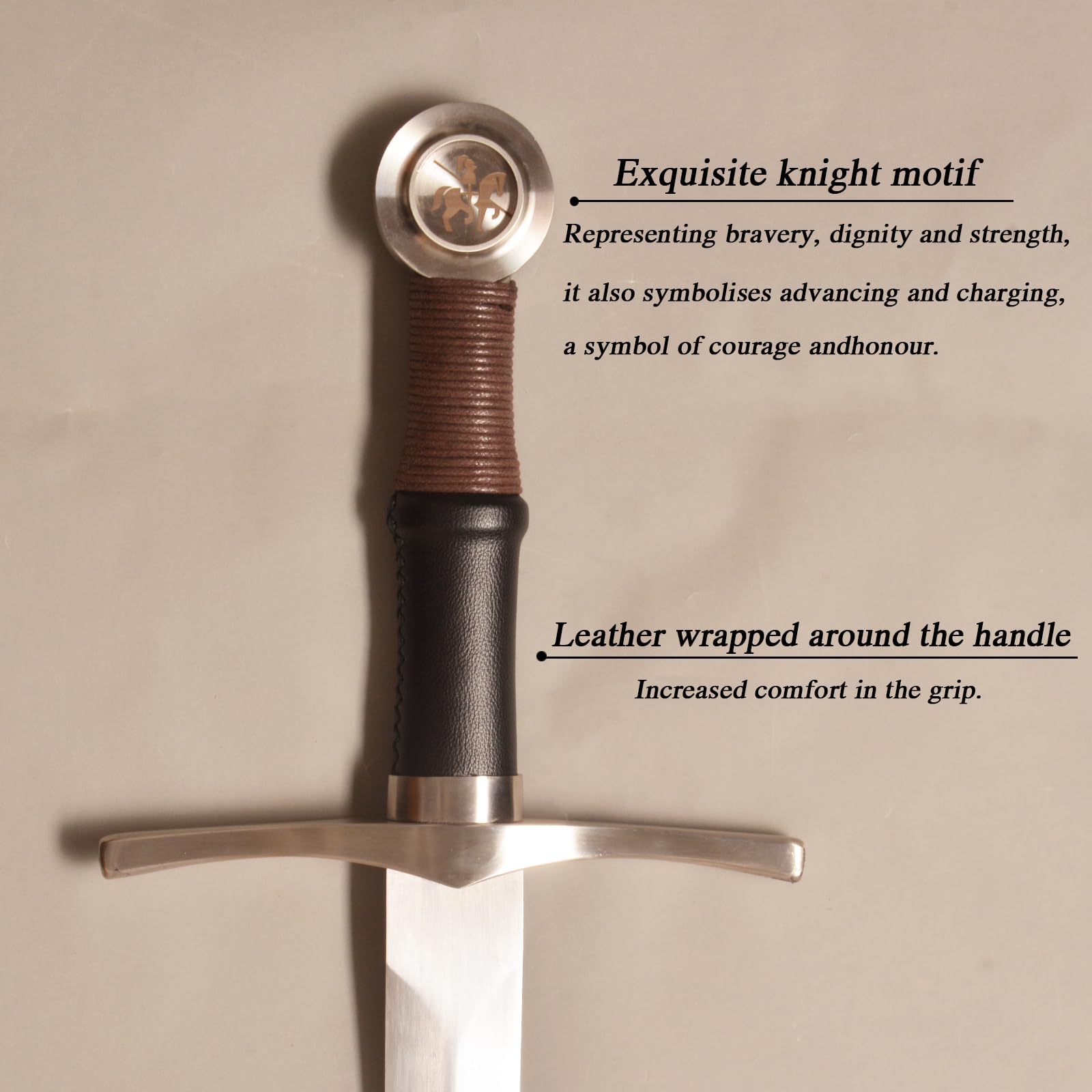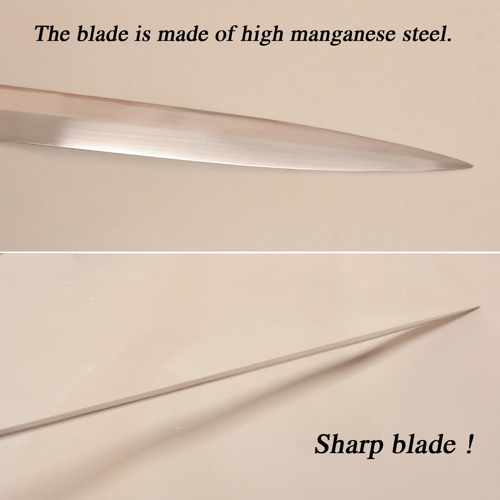 [ Material ] Blade : manganese steel;Handguard : 304 stainless steel;Scabbard : Wooden with PU leather covering.