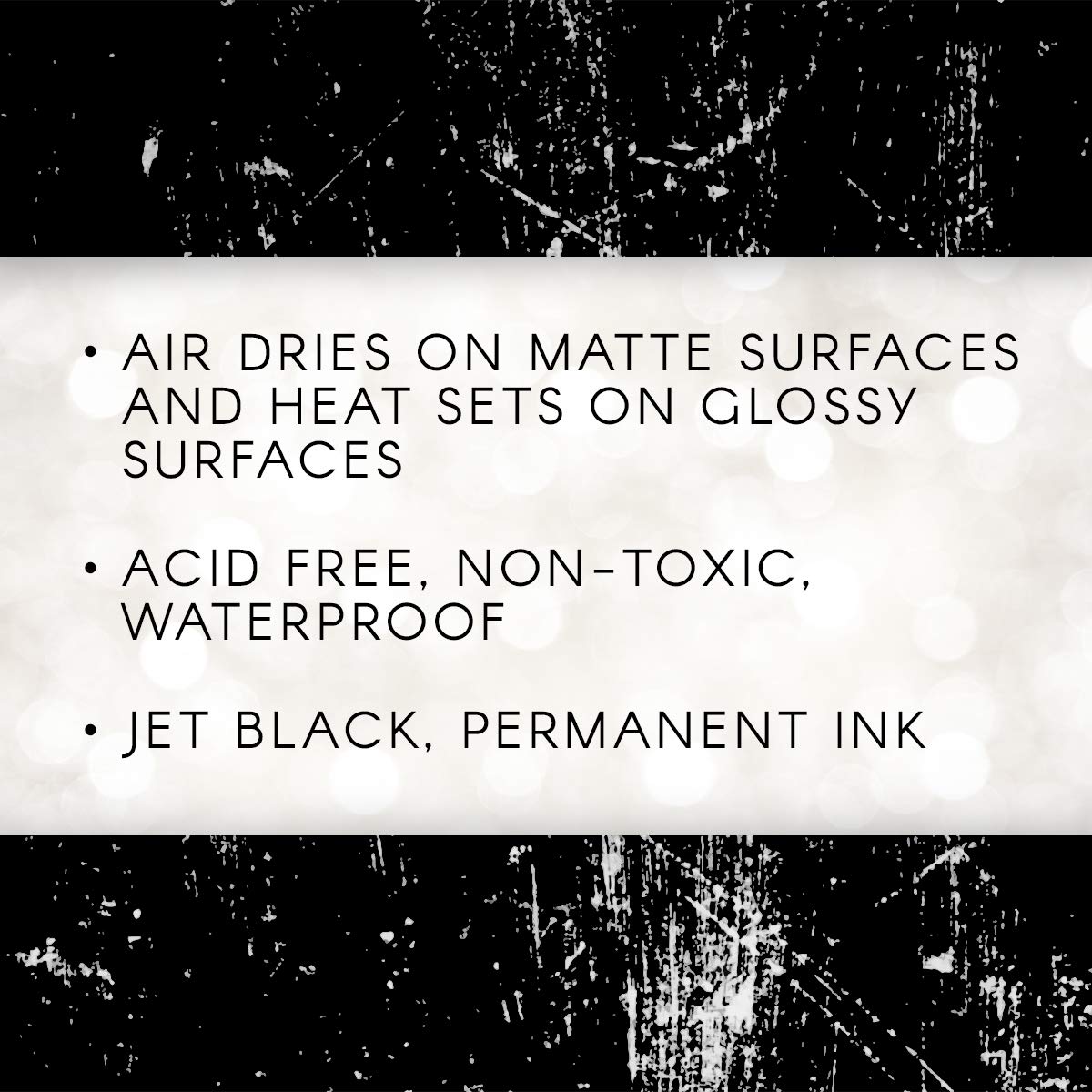 DRYING OPTIONS – Jet black ink quickly air dries on matte surfaces. On glossy surfaces, allow 20 minutes to dry or heat set for faster results.