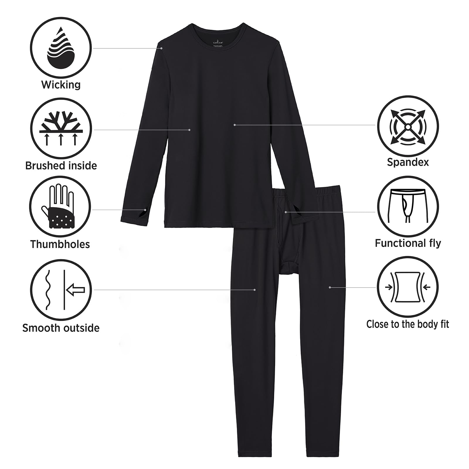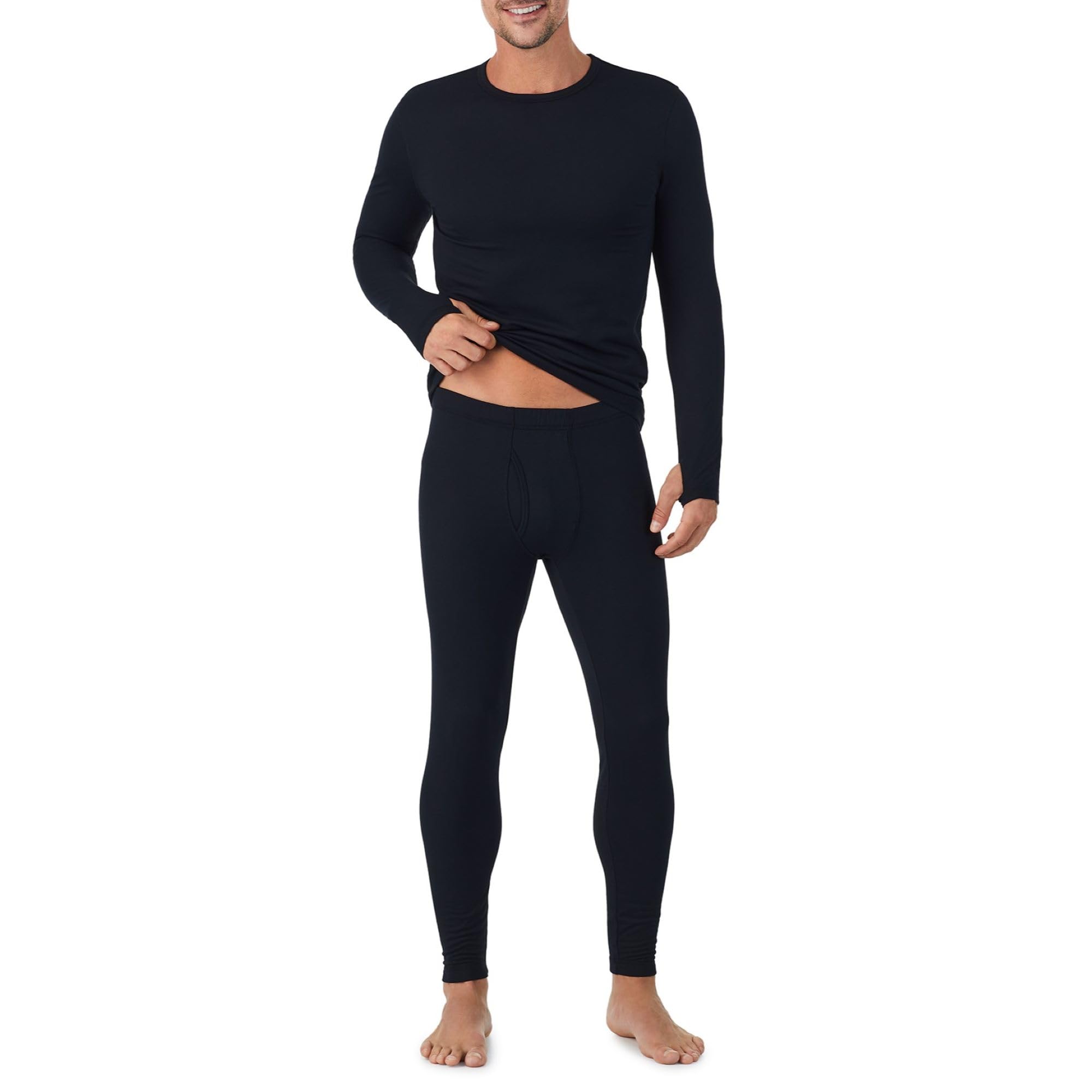Cuddl Duds Thermal Underwear for Men - Men's Cold Weather Clothes Fleece Lined Thermal Long Johns Set - Winter Base Layer Clothing - Thermal Shirt Top and Leggings Pants 2Pc Set for Men - Black Medium