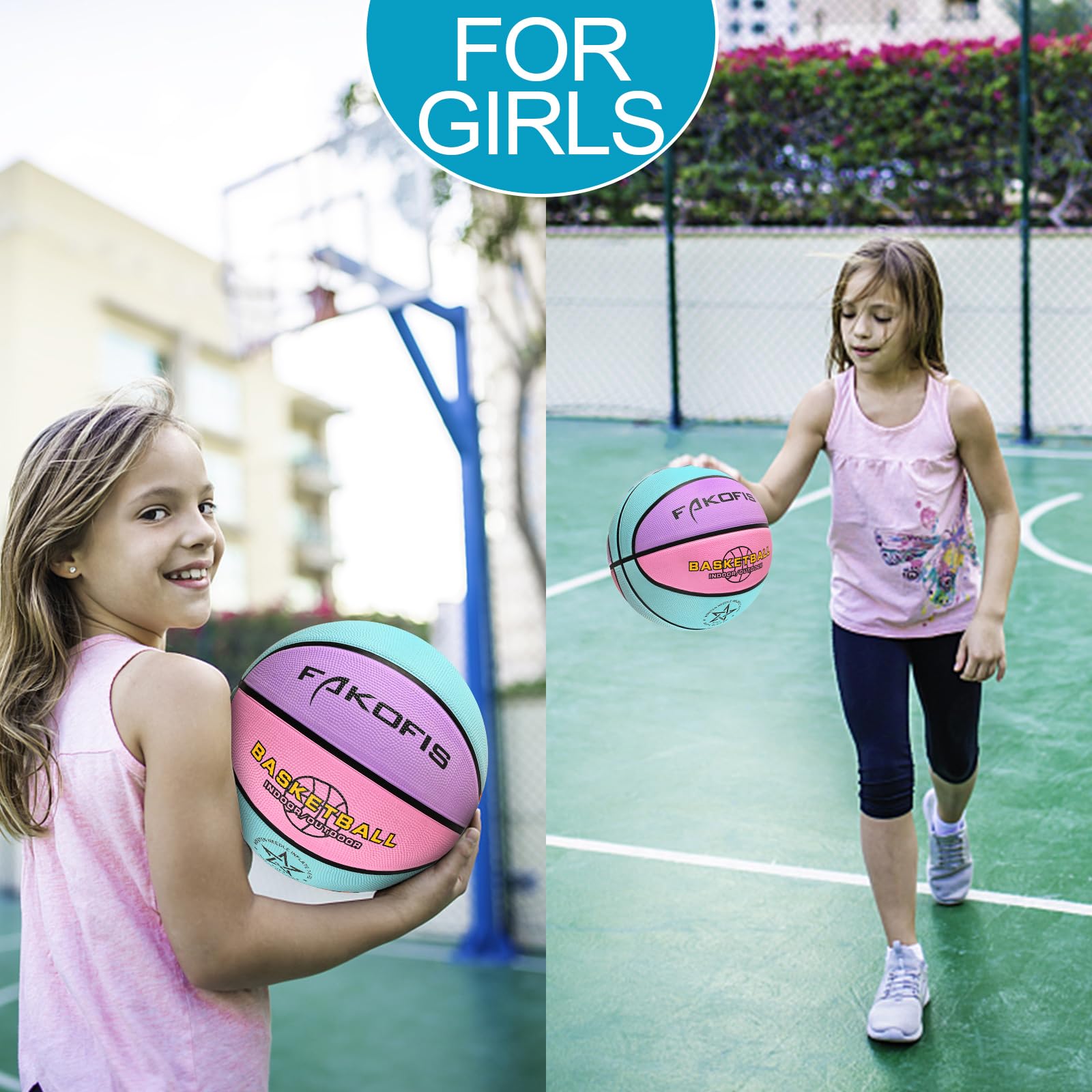 FAKOFIS Youth Basketball Size 5 (27.5'') Premium Rubber Kids Basketball for Indoor Outdoor Backyard Park Pool Play Games (Gift for Children)