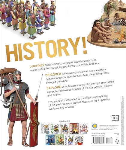 Journey back in time and marvel at the history of our world like never before with this children's encyclopedia perfect for curious kids. Forming part of a fantastic series of kid's educational books, this bold and brilliant kid's encyclopedia uses ground-breaking CGI imagery to reveal the world as you've never seen it before. Informative, diverse in subject matter, easy-to-read and brimming with beautiful graphics, young learners can explore the incredibly detailed cross-sections and cutaways that reveal the inner workings of just about everything! This charming children’s encyclopedia opens the world in new ways, with: - Packed with facts, charts, timelines, and infographics that cover a vast range of topics. - Encompassing a visual approach with illustrations, photographs and extremely detailed 3D CGI images. - Crystal clear text distills the key information. - DK's encyclopedias are fact-checked by subject experts to offer accuracy beyond online sources of information. This fully-updated edition of Knowledge Encyclopedia History! is the perfect encyclopedia for children aged 9-12, ideal for inquisitive minds, bringing key moments in history to life, from exploring the lives of early humans to visiting the Vikings, learning about The Industrial Revolution, and looking towards a greener future! Jam-packed with fun facts about the world, including fascinating statistics, maps, timelines, graphics, and superb photorealistic cross-sections, young history lovers can peer inside ancient buildings, marvel at elaborate outfits, and get close to the battles of history! Explore, Discover And Learn! DK's Knowledge Encyclopedia History! uncovers the marvels of our world in unprecedented detail and with stunning realism. Encompassing engaging historical facts about our world, you can spend quality time diving into the past with your children, accompanied by impressive visuals to engage their senses. A must-have volume for curious kids with a thirst for knowledge, this enthralling children’s encyclopedia is structured in such a way that your child can read a bit at a time, and feel comfortable to pause and ask questions. Doubling up as the perfect gift for young readers, who are always asking questions about our planet! At DK, we believe in the power of discovery. This thrilling kid’s encyclopedia is part of the Knowledge Encyclopedia educational series. Celebrate your child’s curiosity as they complete the collection and discover diverse facts about the world around them. Dive into the deep blue with Knowledge Encyclopedia Ocean! Travel back in time to when dinosaurs roamed the earth with Knowledge Encyclopedia Dinosaur! And hone your knowledge on how the human body works with Knowledge Encyclopedia Human Body! Whatever topic takes their fancy, there’s an encyclopedia for everyone!