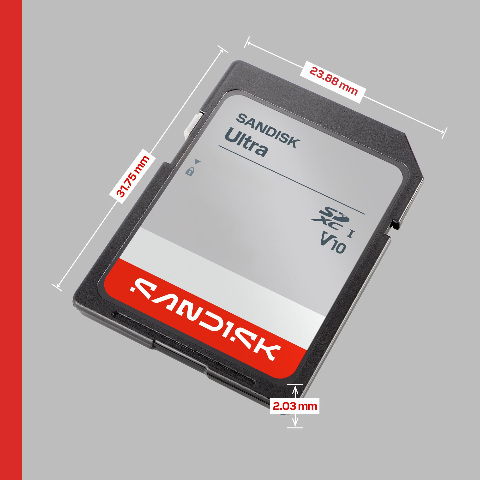 Record your moments in Full HD[3] with reliable SANDISK Ultra SD cards. Ideal for compact and mid-range point-and-shoot cameras, they deliver enhanced performance and high capacities up to 512GB[1]. And, with startling read speeds up to 195MB/s[2] [128GB-512GB models] when used with a SANDISK QuickFlow SD UHS-I Card USB-A Reader (sold separately), you’ll spend less time waiting for your photos and videos to transfer, and more time capturing your latest inspiration. Journey fearlessly knowing your card is waterproof, temperature proof, X-ray proof, drop proof, magnet proof, humidity proof, wear out proof, and shock proof[5], and backed by a 10-year limited warranty[4] for extra peace of mind. Plus, easily back up, organize, and transfer your photos and videos with the SANDISK Memory Zone desktop app[6].
