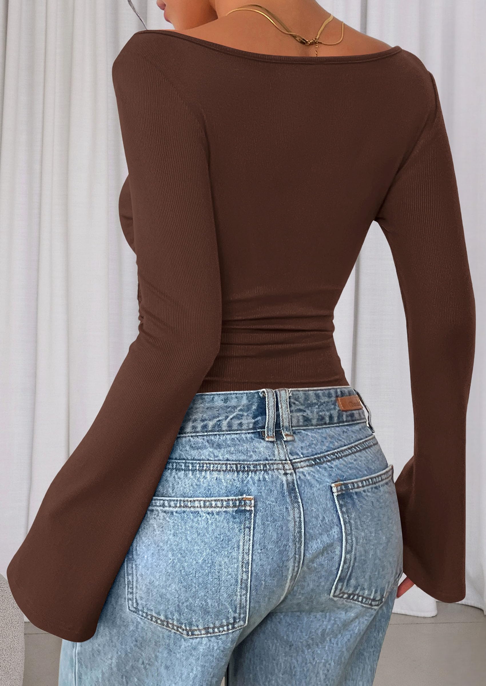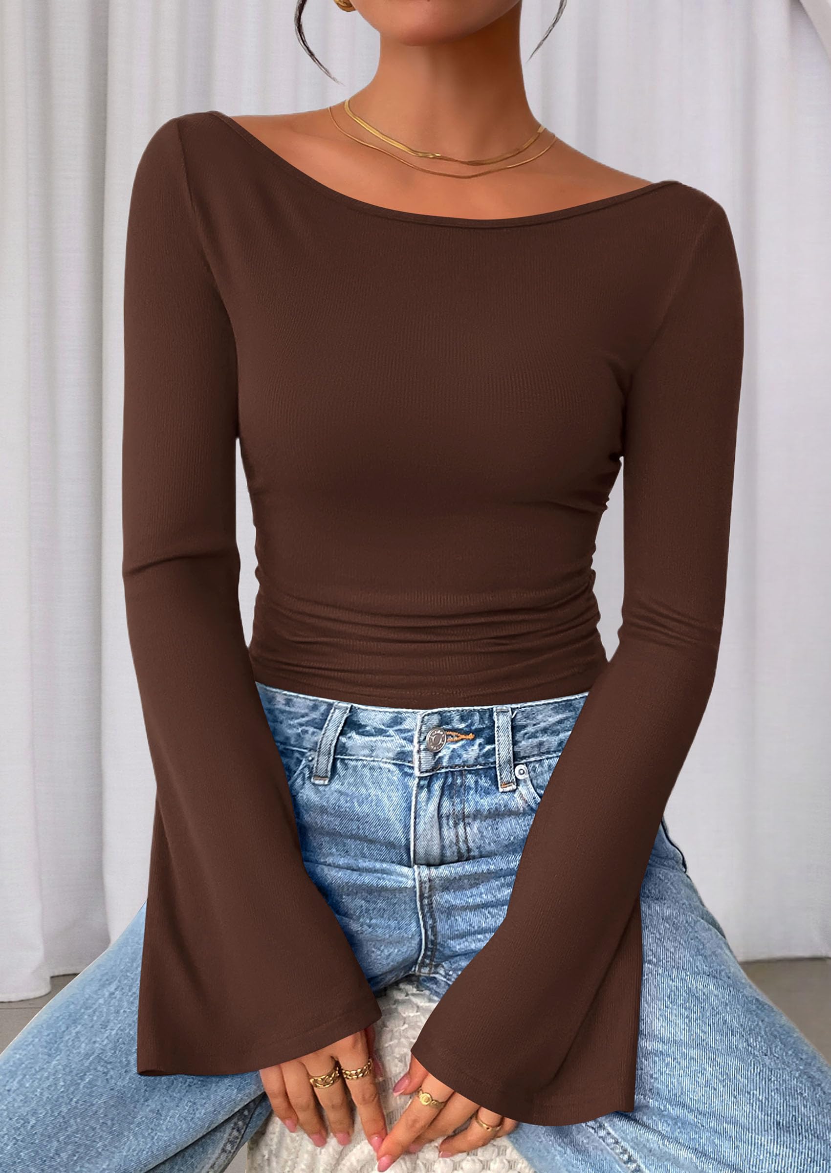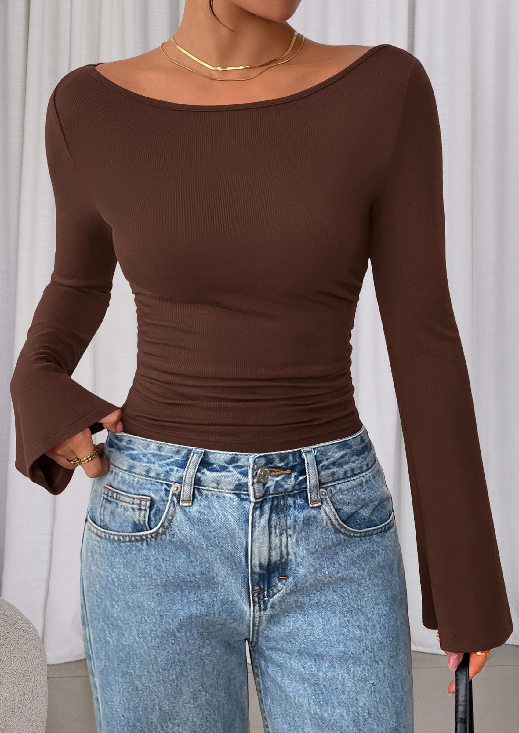 Features: Boat neck tops for women, y2k tops, ribbed knit fitted casual tees, plain T-shirts for women. Bell sleeve design makes it look chic and elegant, suitable for fall, winter and spring