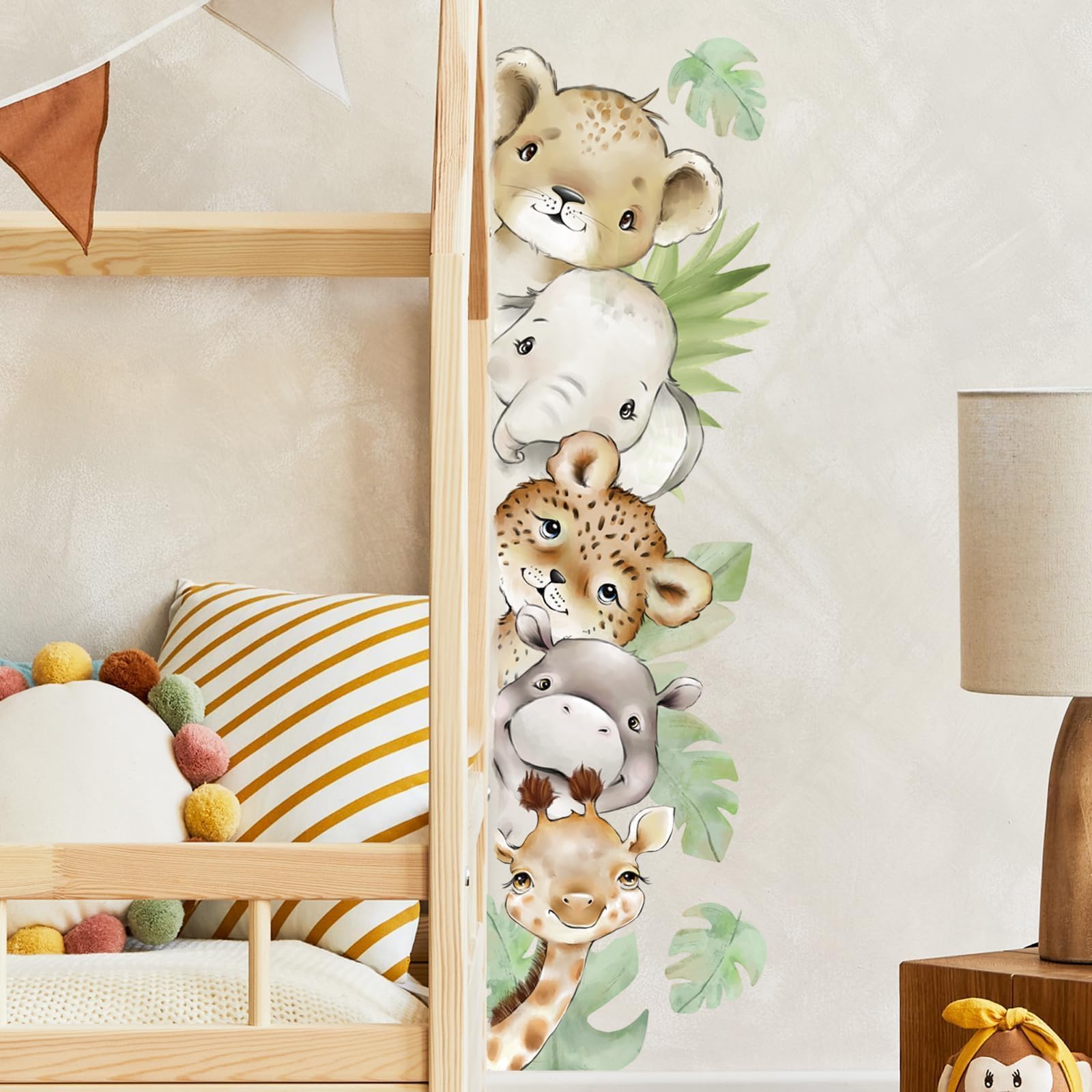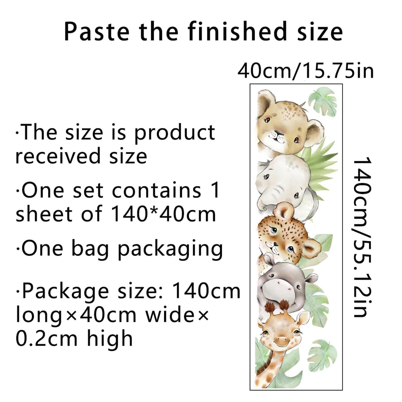 Package Content: You will receive a watercolor jungle animal wall sticker, contains cartoon animal sticker paintings of giraffes, lions, elephants, tigers, hippo suitable for living room, bedroom, playroom, nursery, classroom, daycare, kindergarten and other walls