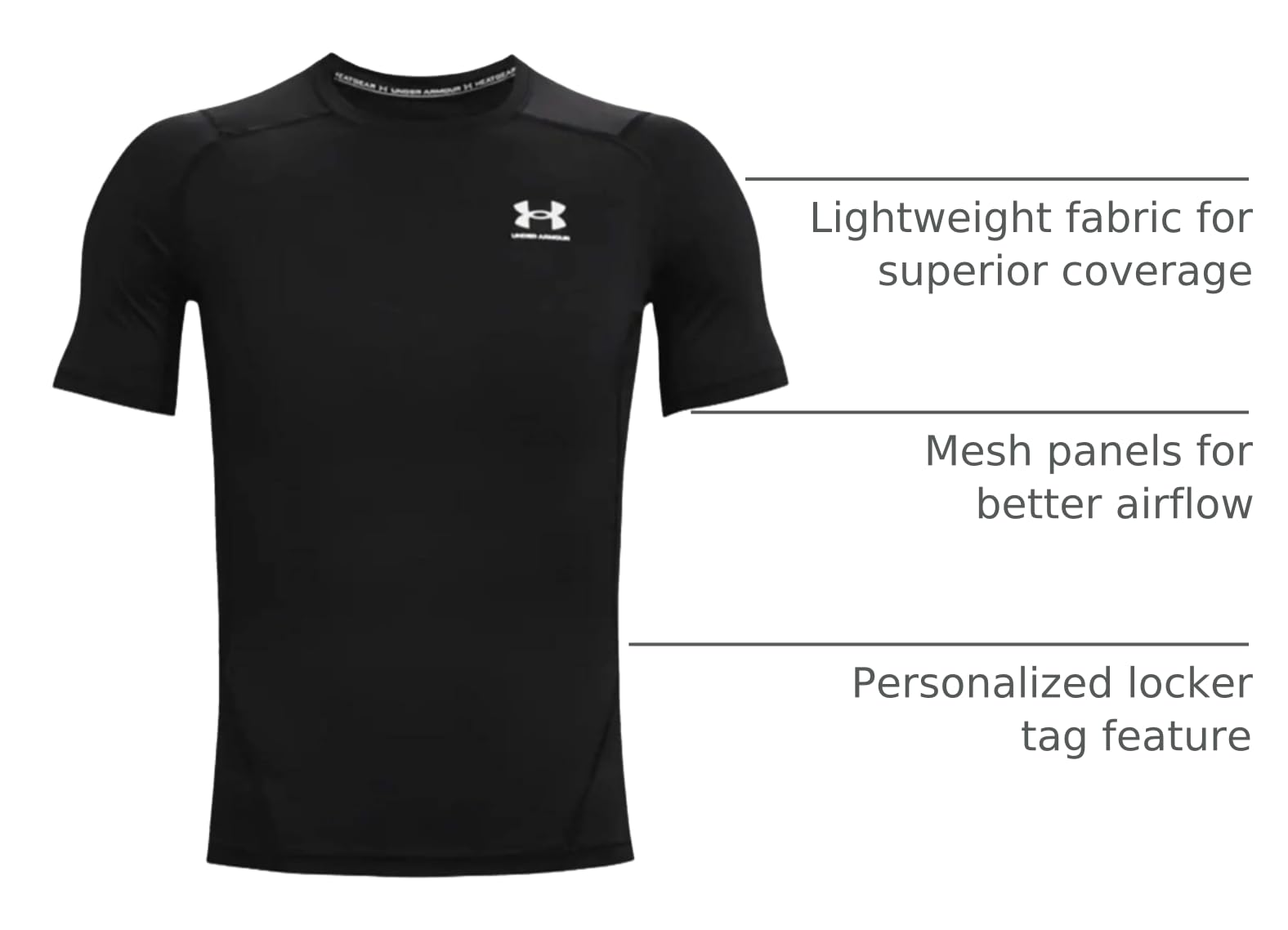 Description HeatGearยฎ Armour is our original performance baselayerโthe one you put on first and take off last. So we made it extra comfortable by wicking sweat and stretching so you can move no matter what. Super-light HeatGearยฎ fabric delivers superior coverage without weighing you down. Mesh underarm & back panels for strategic ventilation. Material wicks sweat & dries really fast. Ergonomic design keeps seams off high abrasion areas & increases durability. Hybrid raglan sleeve construction for added range of motion & comfort. Write-in locker tag on back of neck for your initials or number. Compression:Ultra-tight, second-skin fit. 84% Polyester/16% Elastane.