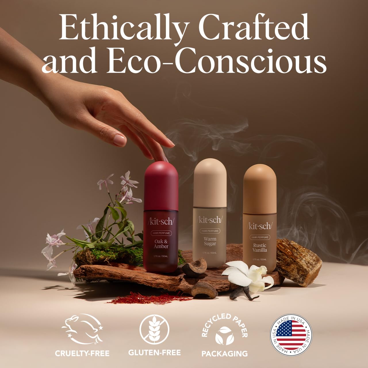 WARM & EARTHY SCENT: Immerse yourself in the inviting aroma of Kitsch Rustic Vanilla Hair Perfume, crafted with a rich blend of Warm Tonka, Vanilla & Cedar Blend. This balanced fragrance delivers a sweet yet earthy profile that feels elegant, cozy, and approachable for any occasion. A few spritzes of this long-lasting hair fragrance spray for women refresh strands with a sophisticated scent that lingers all day without weighing hair down.