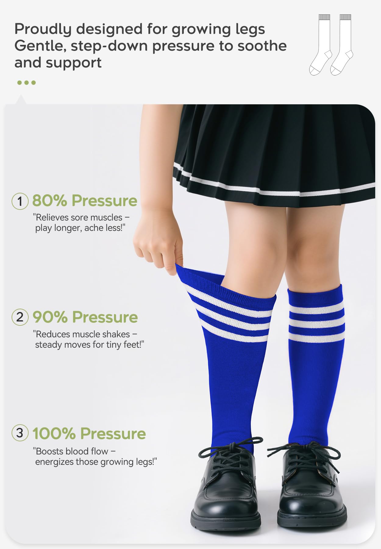 FASHION STYLE: Fashion triple stripes knee high socks keep your children warm with a cute look and the most dazzling one. Great for casual daily, party and football. Super soft and cute with shorts and miniskirts.