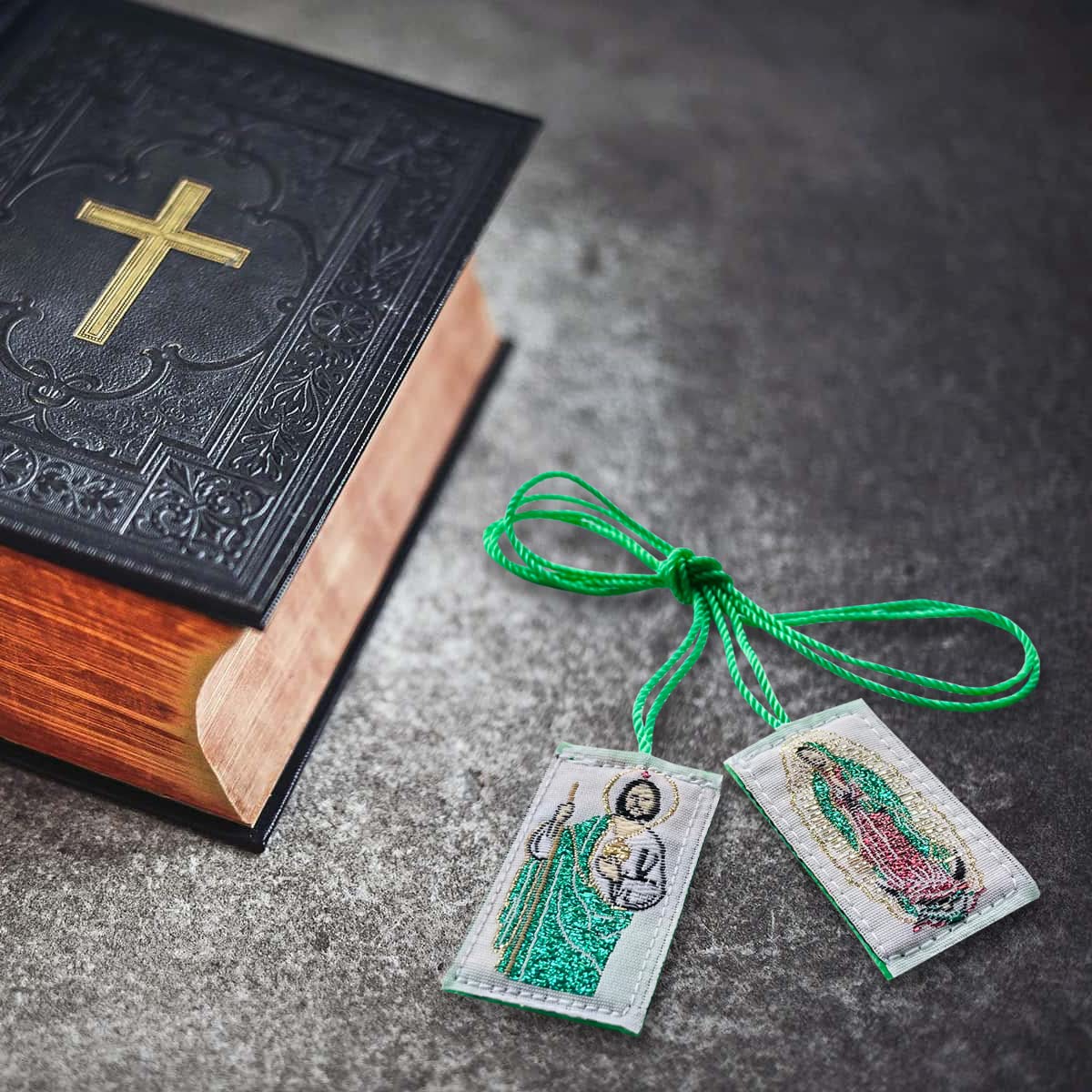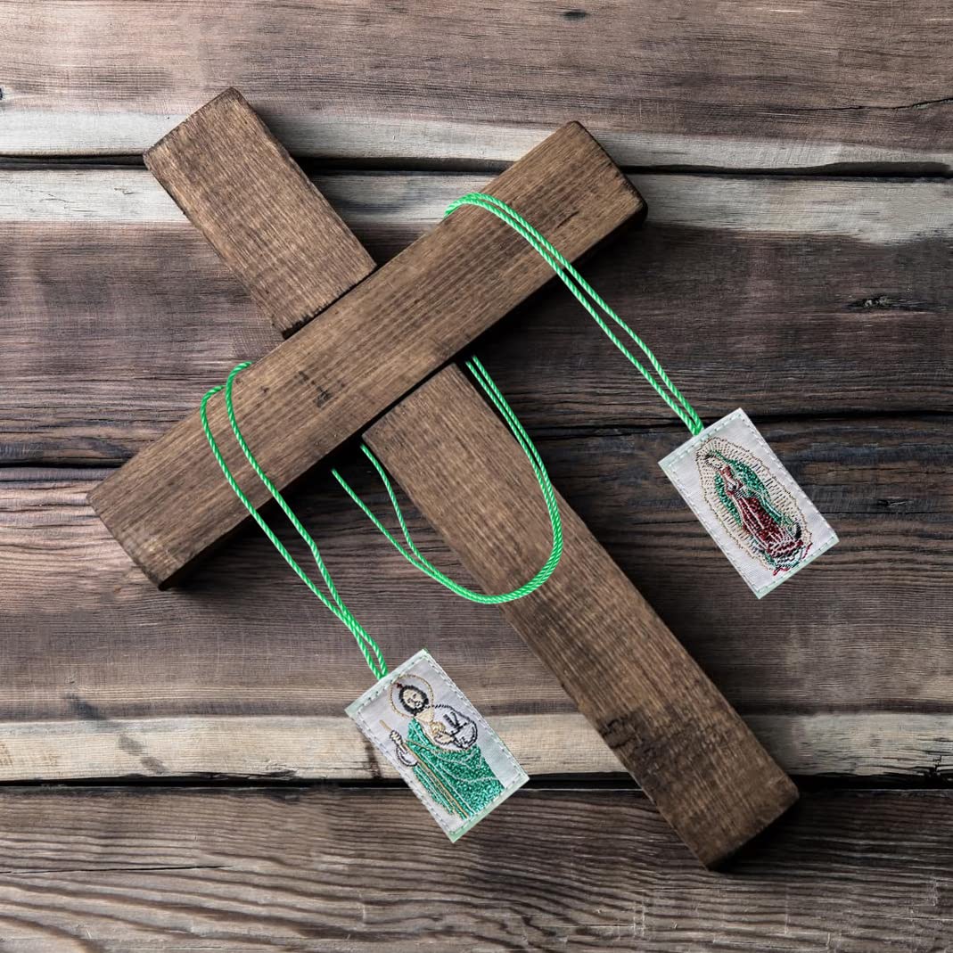 A Selection of Religious Scapulars: The scapular represents the special bond between the Blessed Virgin Mary, San Judas Tadeo, and those who rely on her protection. It reminds us of the importance of prayer and our spiritual journey, and serves as a powerful symbol of their intercession and protective love.
