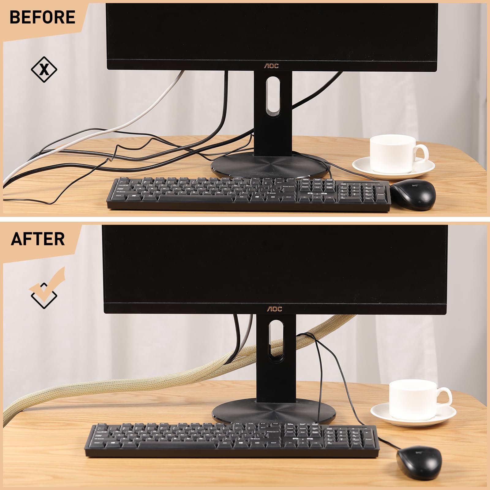 【Humanised Self-Closing Design】Self-closing cable duct ensures order. AGPTEK Self-Closing Cable Sleeve Cover for Fast Bundling, Hiding, and Tidying Up Whether at home or in the office, the cable management protects against pet damage, With our cable ducts, you can easily hide cables. Easy assembly for perfect results - makes cable management at the desk fun