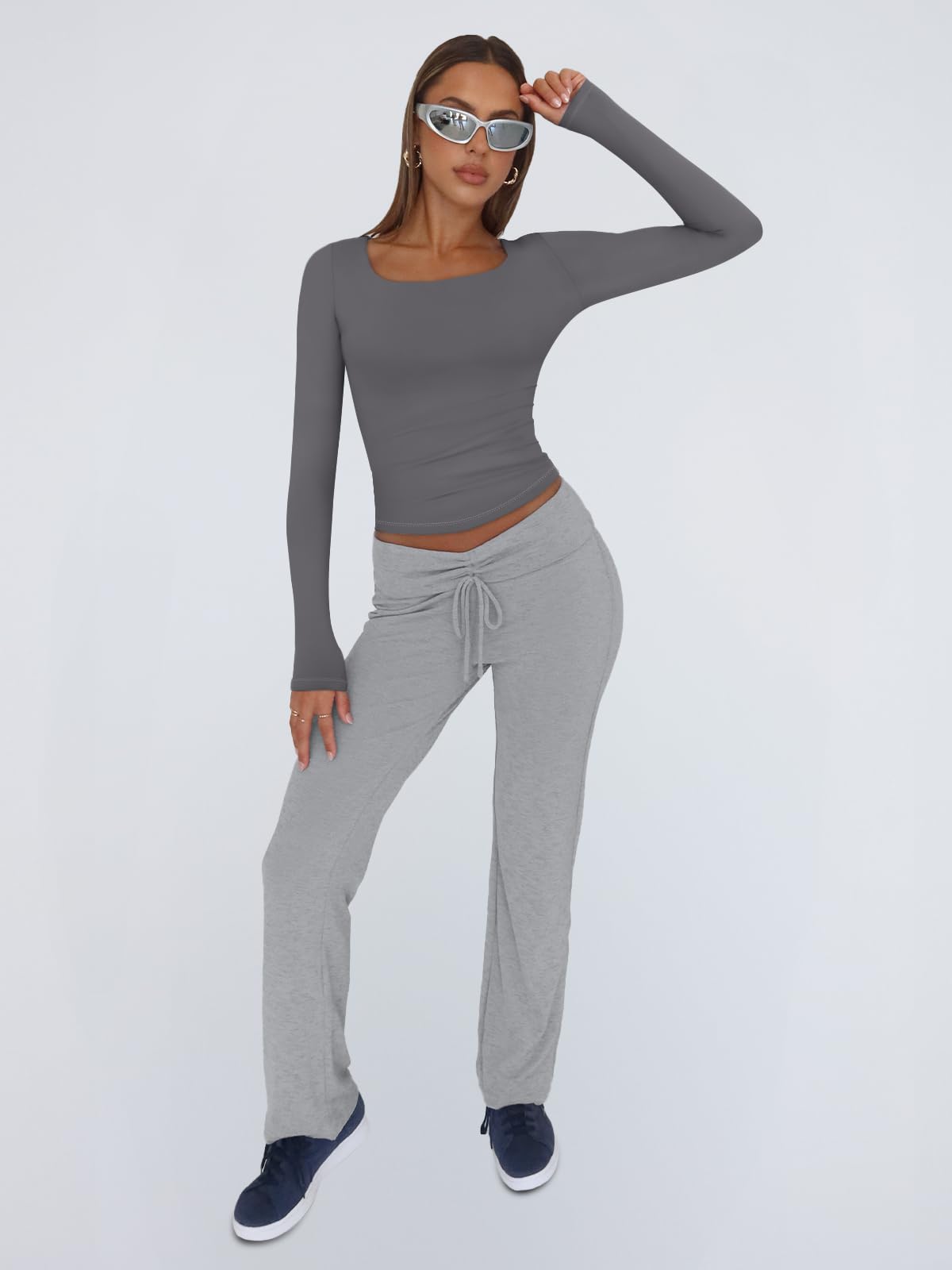 Y2K-Inspired Design: Features a clean tailored cut that can be worn full-length or folded into a cute crop top. With a body-hugging fit, low square neck, and long sleeves, it delivers a sleek yet casual Y2K aesthetic