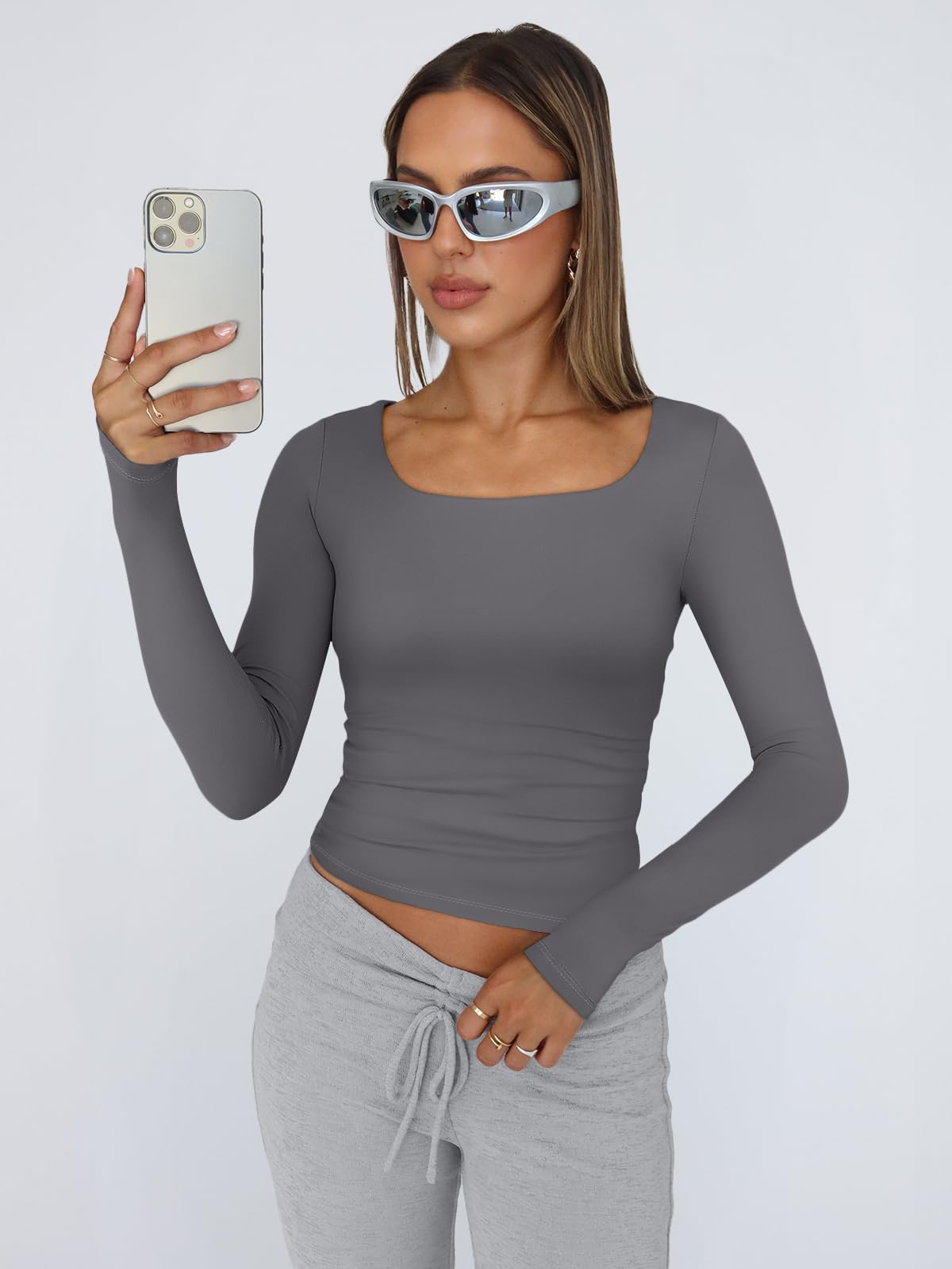 Soft Material: Crafted from a blend of 88% polyester and 12% spandex, this long-sleeve top is lightweight, ultra-soft, and highly stretchable. It offers a second-skin feel, making it an ideal layering piece or standalone top