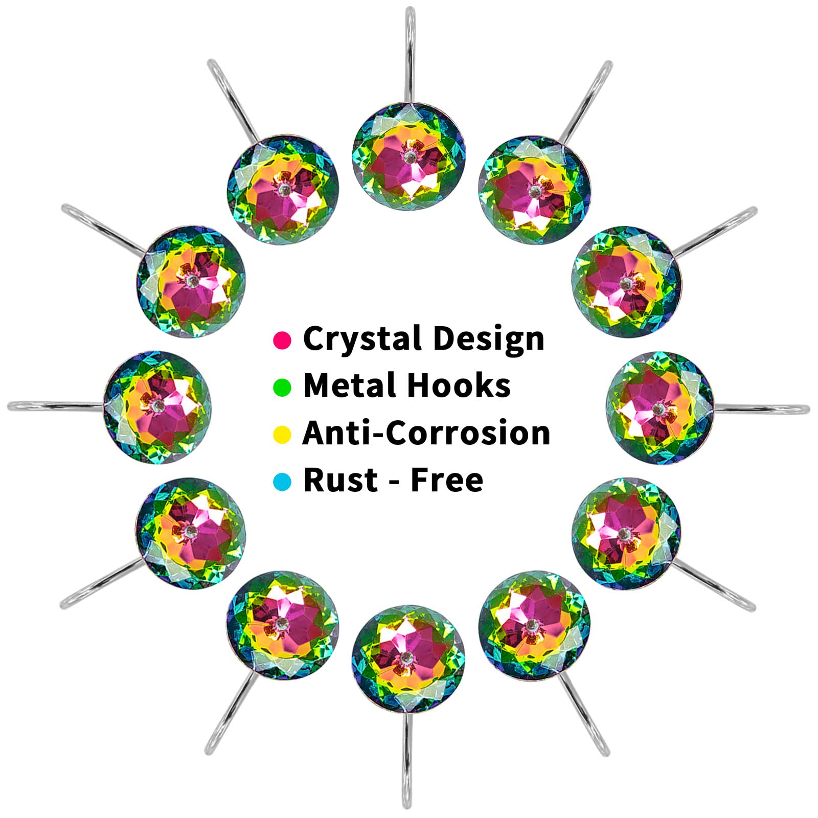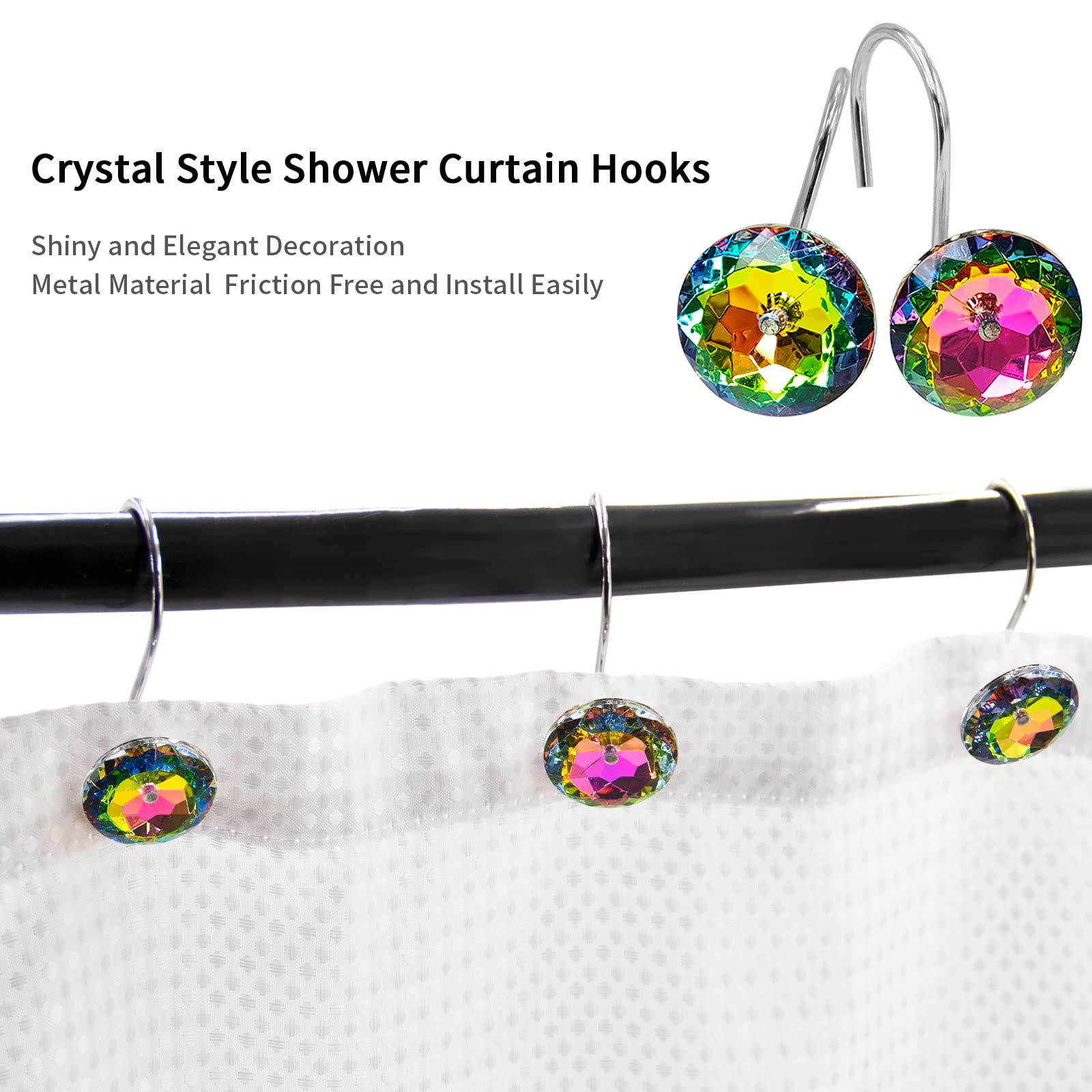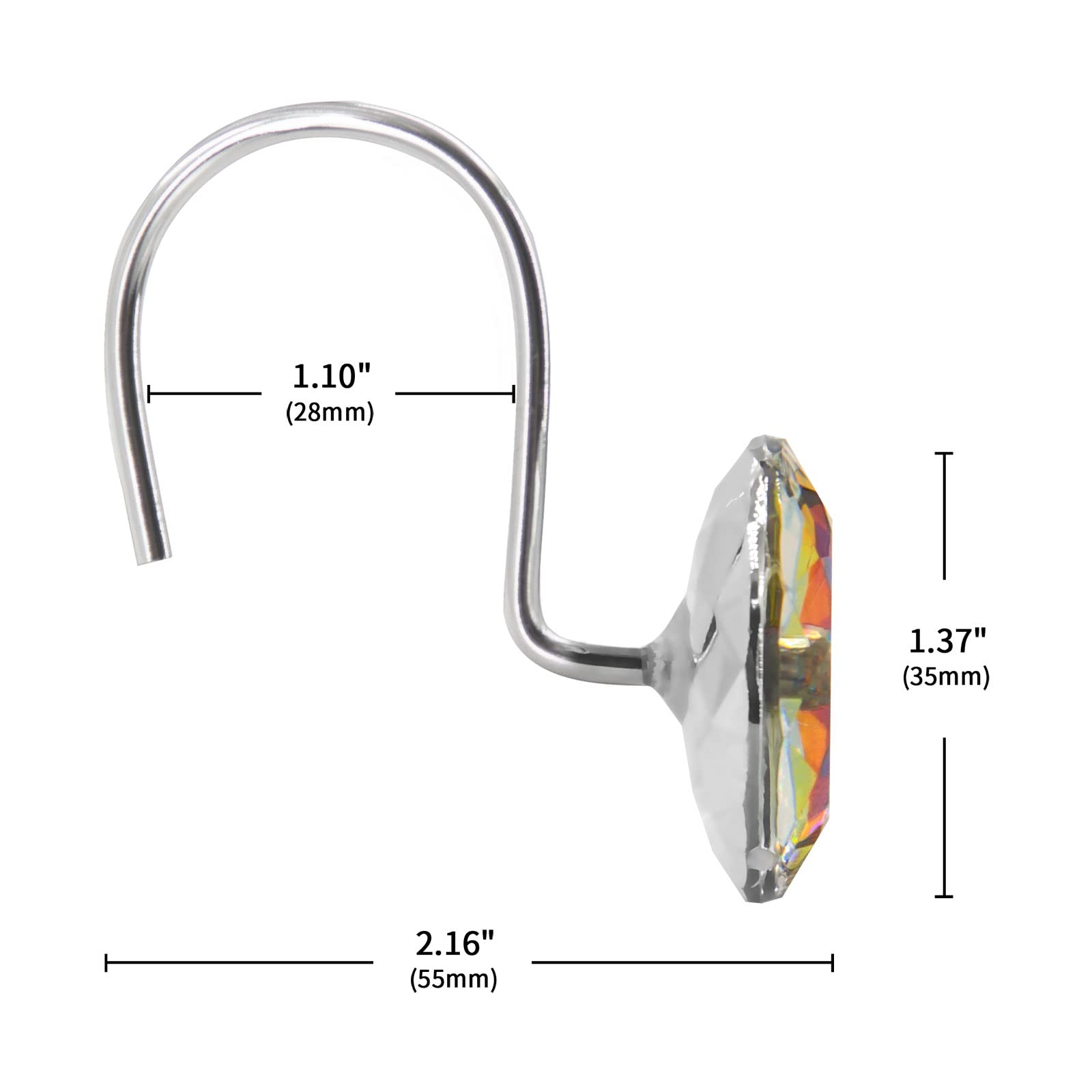 STYLISH AND FUNCTIONAL - Elevate the look of your shower curtain with these hooks featuring a sleek and modern design. The addition of rhinestone decorative accents adds a touch of elegance that complements any bathroom decor.