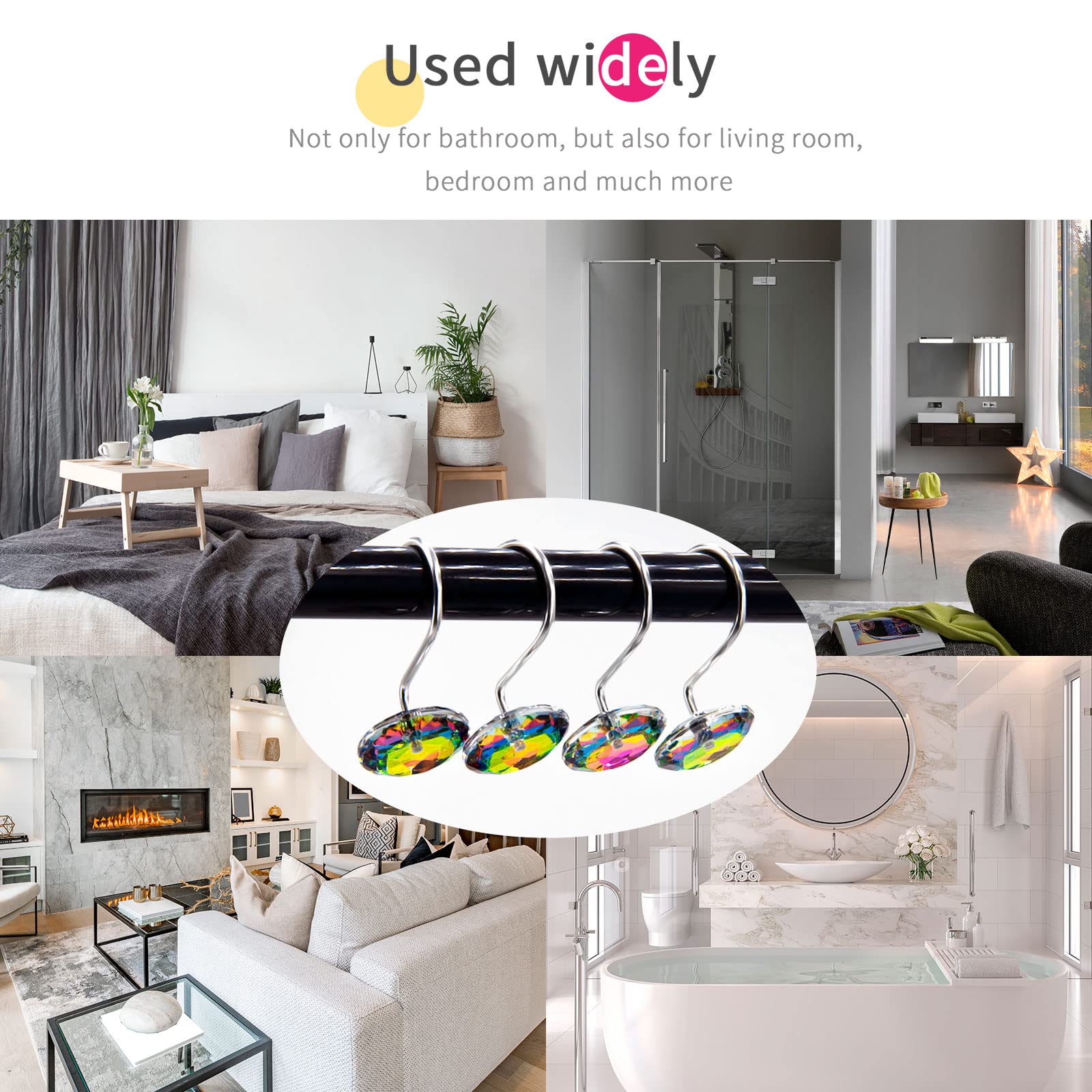 EASY INSTALLATION - Installing these hooks is a breeze, PACKAGED OF 12 PCS. Simply slide them onto your shower curtain rod and effortlessly hang your curtain. Their smooth glide along the rod makes opening and closing your shower curtain effortless.