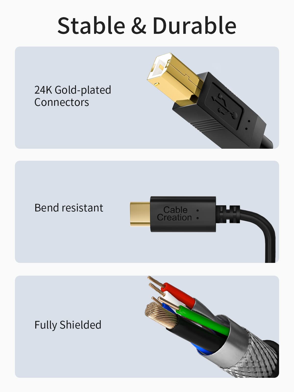 What You'll Get: 3 x CableCreation USB C to B Printer cable. CableCreation offers a 24-Month product replacement date, backed by friendly customer service. Any questions, please let us know and we are always here to assist.