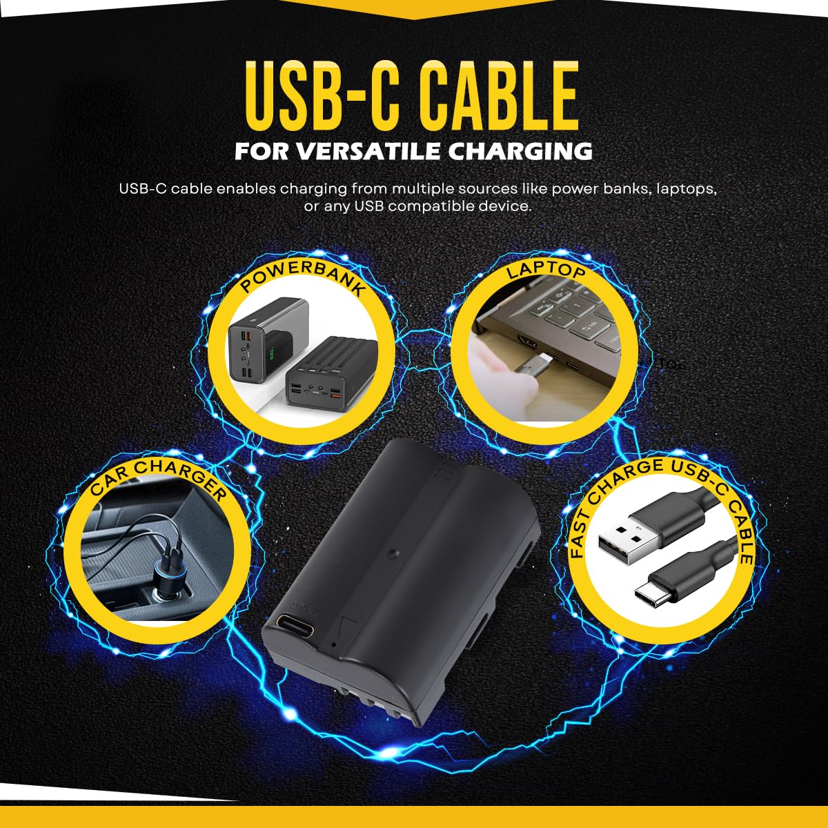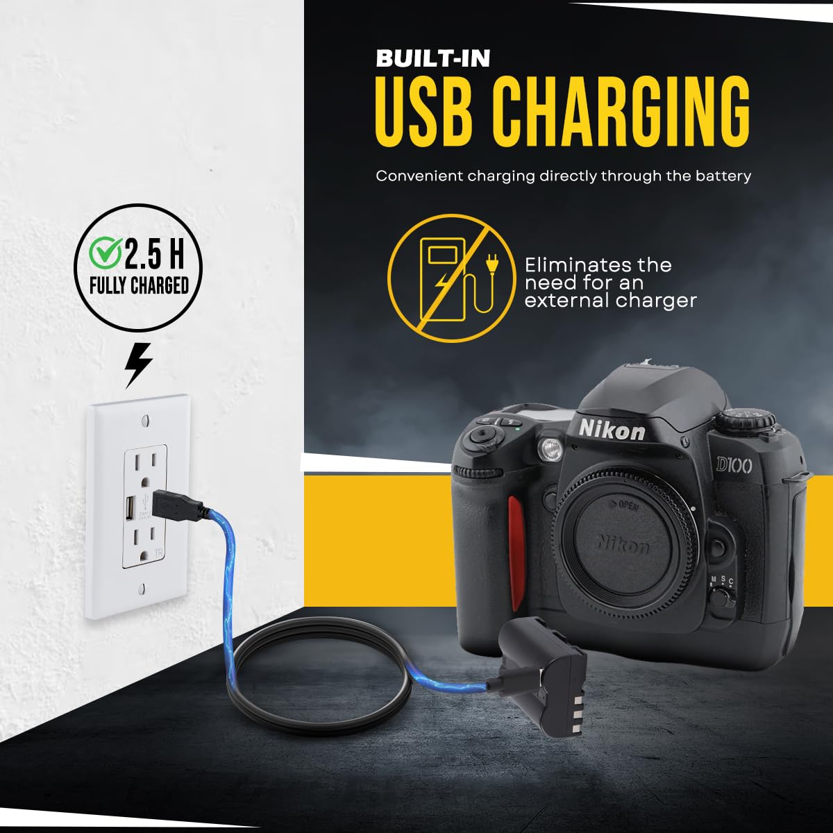 USB Charging Convenience - The EN-EL3E replacement battery model comes equipped with a built-in USB charging capability. The purchase includes a USB-C charging cable, offering you a versatile charging solution for your photography tasks.