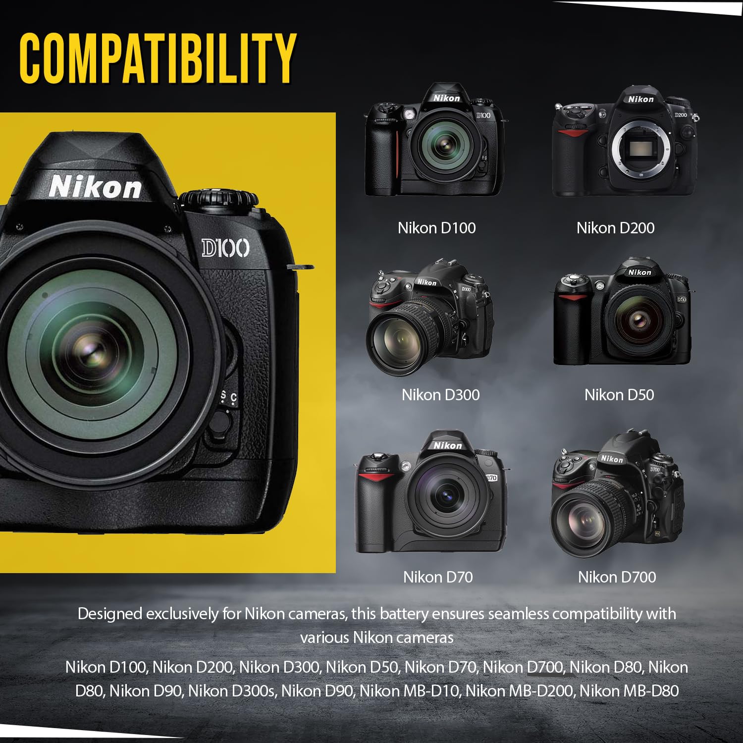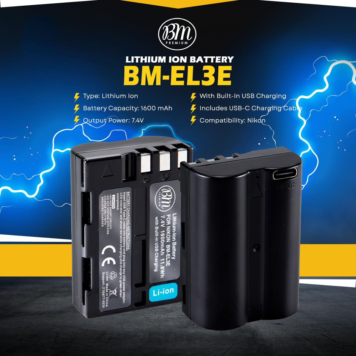 Impressive Power Capacity - Boasting a 1600 mAh energy storage and delivers a 7.4V output, this lithium-ion BM Premium battery ensures longevity between recharges. Power your Nikon camera with a reliable EN EL3E lithium-ion battery, ensuring extended shooting sessions without interruption while optimizing performance.