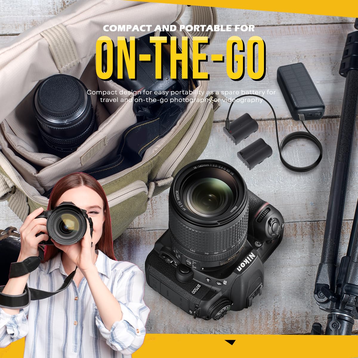 Versatile Charging Option - This EN-EL3E battery can be charged in various locations, offering flexibility and convenience – use this camera battery in wall charger, computer or laptop, power bank, car charger, USB charging station, and other USB compatible devices.