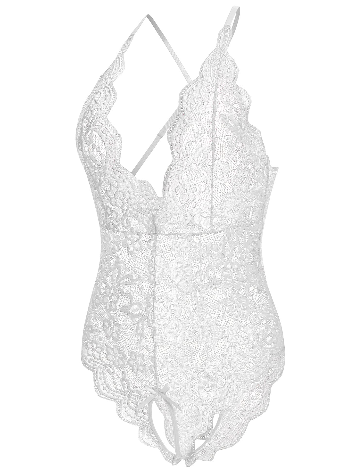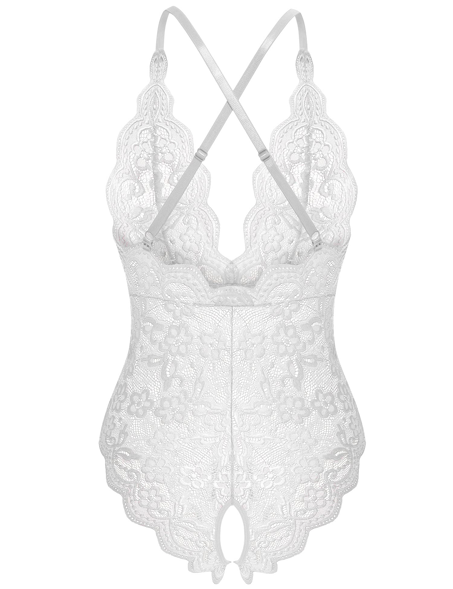 Features:Soft floral lace bodysuit with a delicated scalloped on cup eadge,deep V-neck and criss cross back adjustable strap design to show your beautiful lines and draw your lover's attention on a special night.