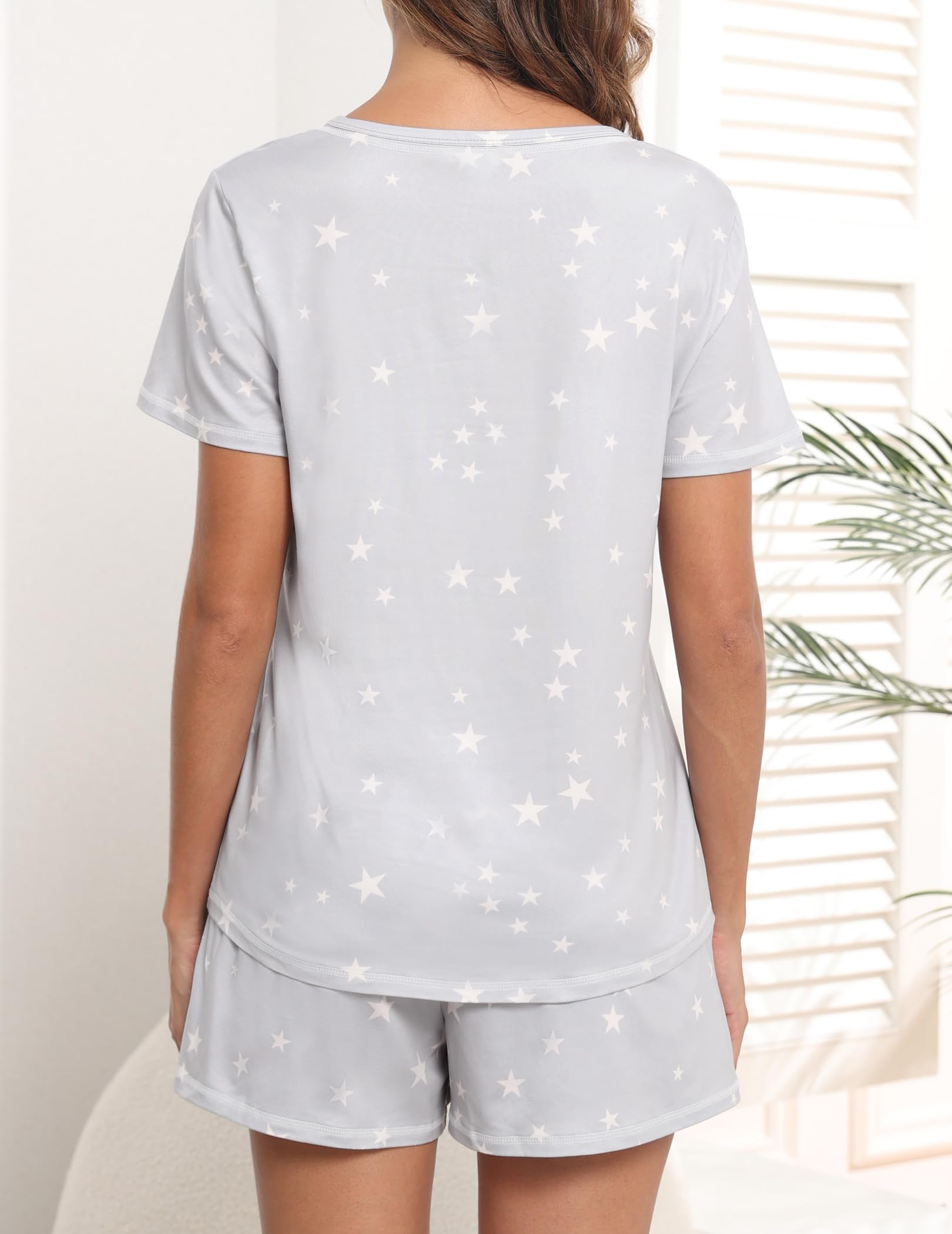 Material: 95% Polyester + 5% Spandex. Ekouaer womens short pajama sets are soft, lightweight, easy care, good elasticity, not easy to wrinkle, skin-friendly, breathable and comfortable
