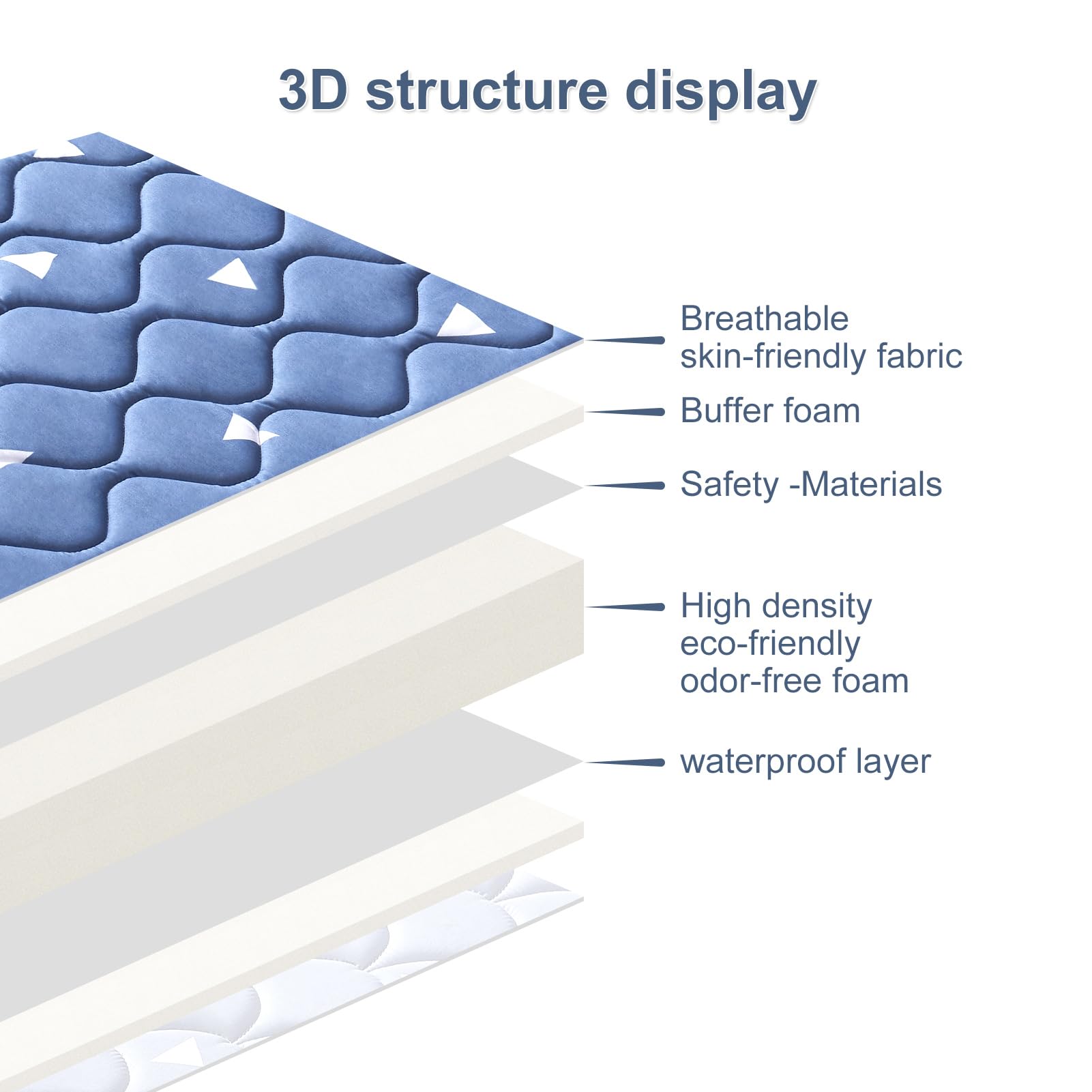 Handmade edges: Using handmade 3D edges and rounded corners design, it fits snugly with the cradle, preventing babies from getting their feet caught and toys from falling off, making the mattress better cushioned, not deformed, and improving comfort.