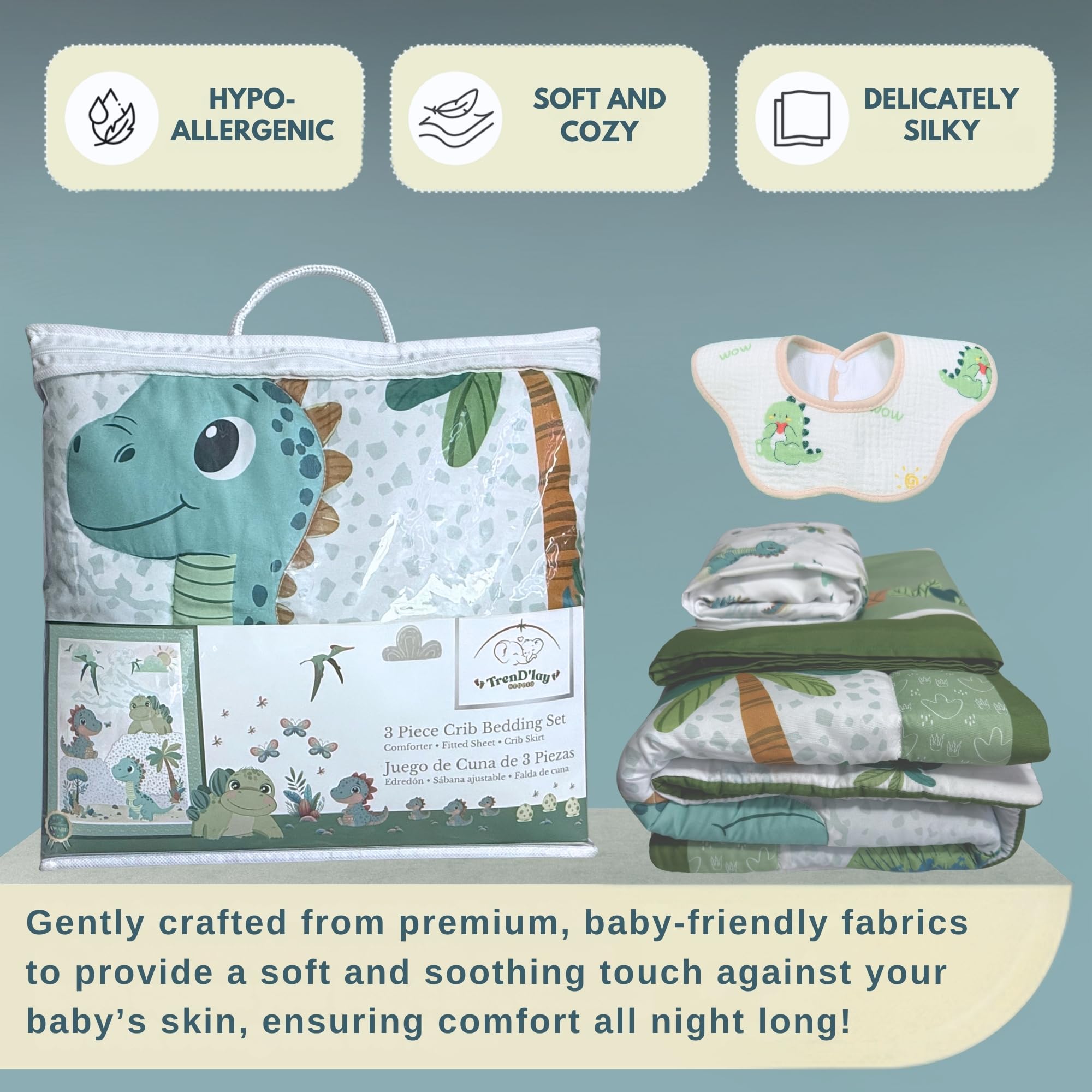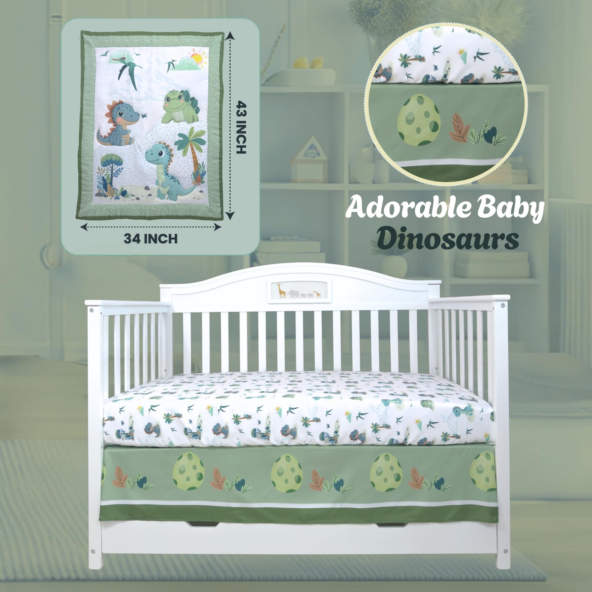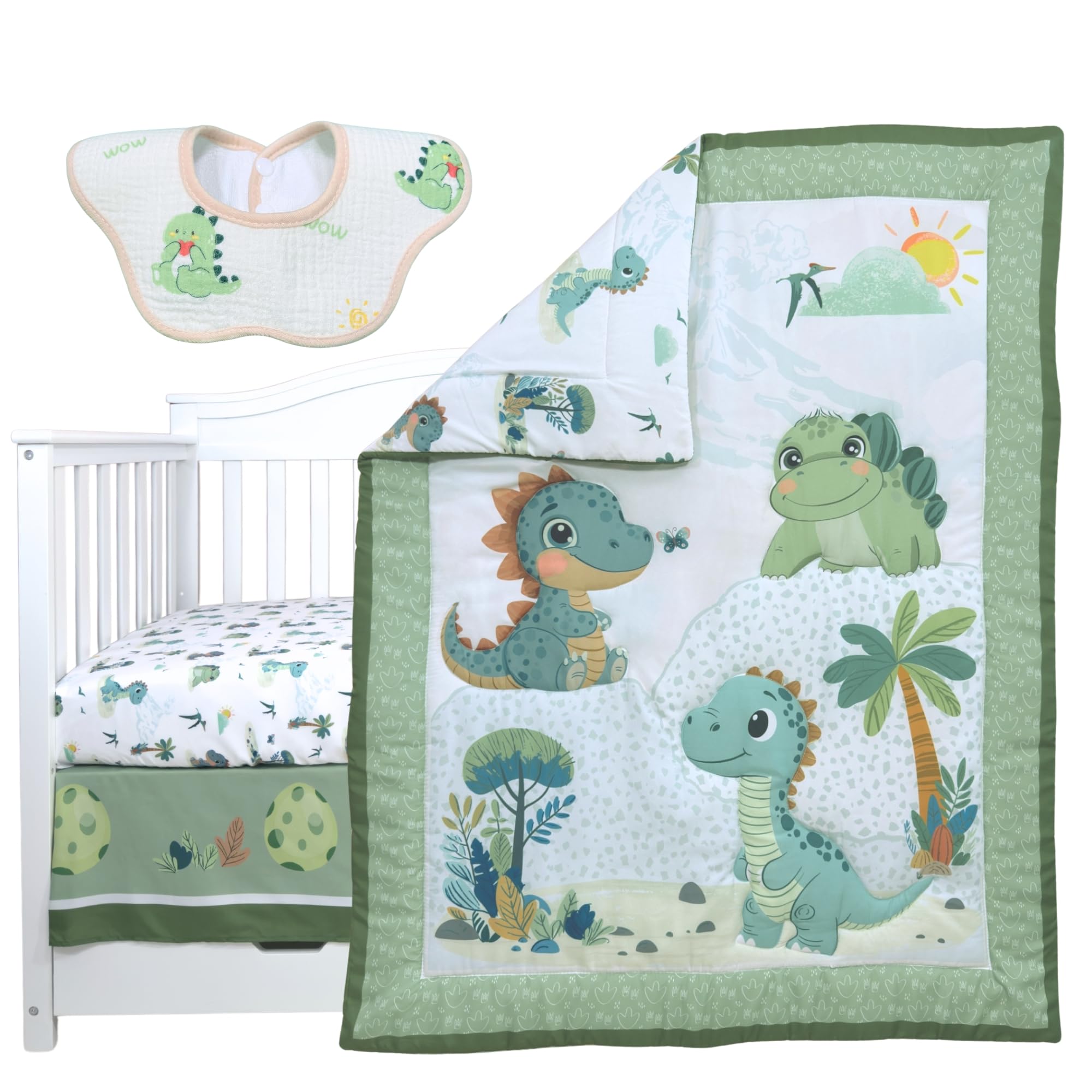 🎁🌿 Perfect Baby Shower Gift: A thoughtful and practical gift for expecting parents, this charming dinosaur bedding set is ideal for baby showers, first birthdays, or your own sweet arrival.
