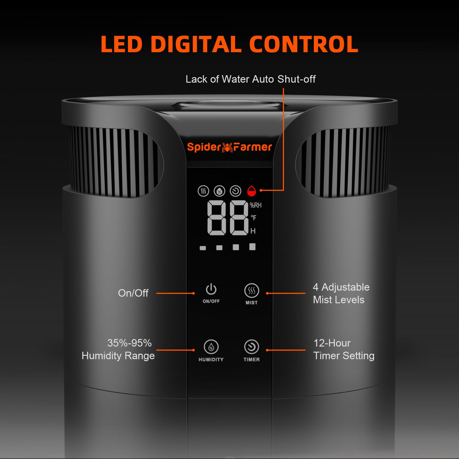 𝐀𝐝𝐣𝐮𝐬𝐭𝐚𝐛𝐥𝐞 𝐃𝐢𝐠𝐢𝐭𝐚𝐥 𝐇𝐮𝐦𝐢𝐝𝐢𝐭𝐲 𝐂𝐨𝐧𝐭𝐫𝐨𝐥 - The target humidity can be adjusted to 35%-95% at 5% intervals, and the humidifier will auto control humidify after settin, and this humidifier eqquied with a 12H timer, the setting range is 1-12 hours, If you want uninterrupted humidification, please do not set the timer program.