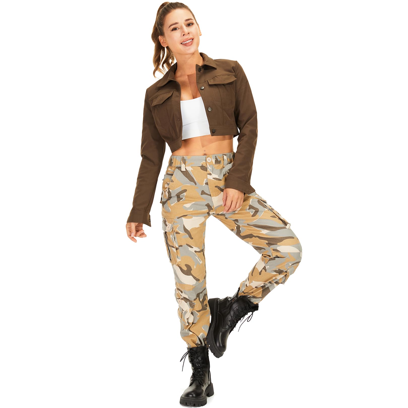 Women's Ripstop Cargo Pants: Alfiudad womens tactical pants featuring a gusseted crotch and a fitted appearance,and offers optimum flexibility and a comfortable fit to eliminate your worries about rips and tears.This camo pants for women are with easy care wrinkle resistant fabrics, roomy pockets & sturdy zippers & buttons.