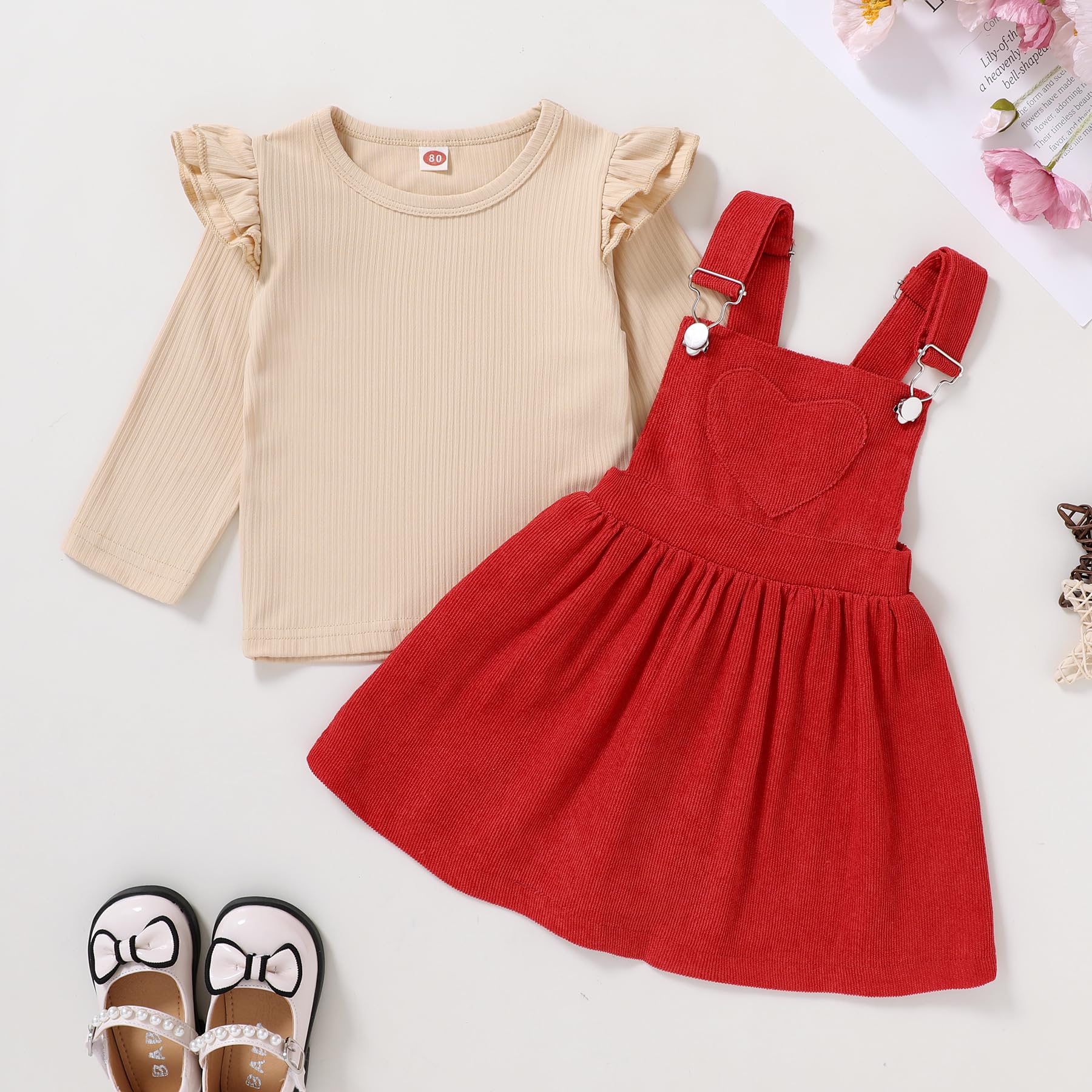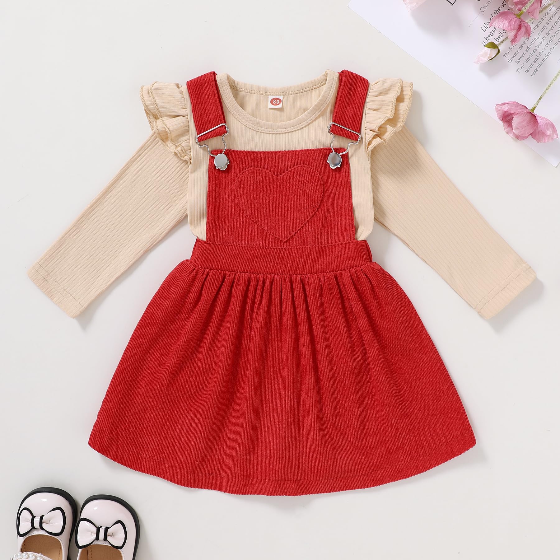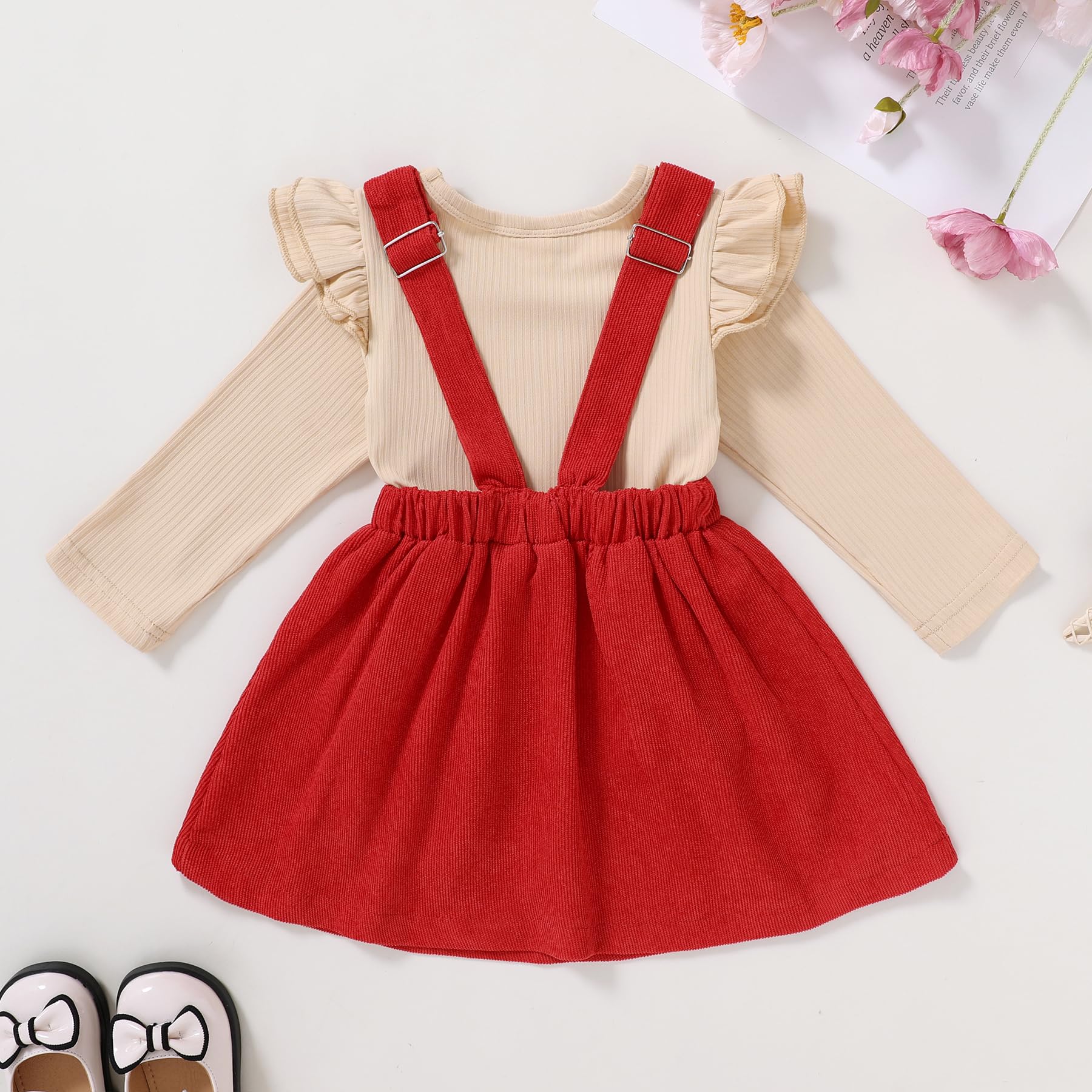 Feature: toddler girl fall outfits, girls overalls 3t, 4t girls clothes, adjustable strap dress and long sleeve stripe t-shirt, 4 lovely colors available, perfect toddler fall dresses
