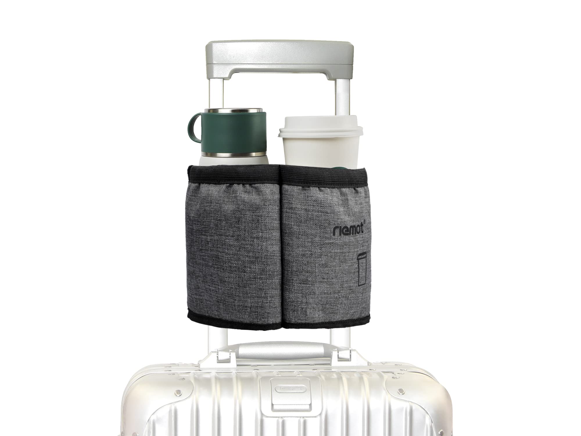 𝐫𝐢𝐞𝐦𝐨𝐭 𝐋𝐮𝐠𝐠𝐚𝐠𝐞 𝐂𝐮𝐩 𝐇𝐨𝐥𝐝𝐞𝐫 𝐟𝐨𝐫 𝐒𝐮𝐢𝐭𝐜𝐚𝐬𝐞: Free Your Hands, Go Travel! Traveling can be a drag, and you don't usually have a free hand to hold a drink especially with kids. But with this suitcase cup holder, you can hold two drinks now.
