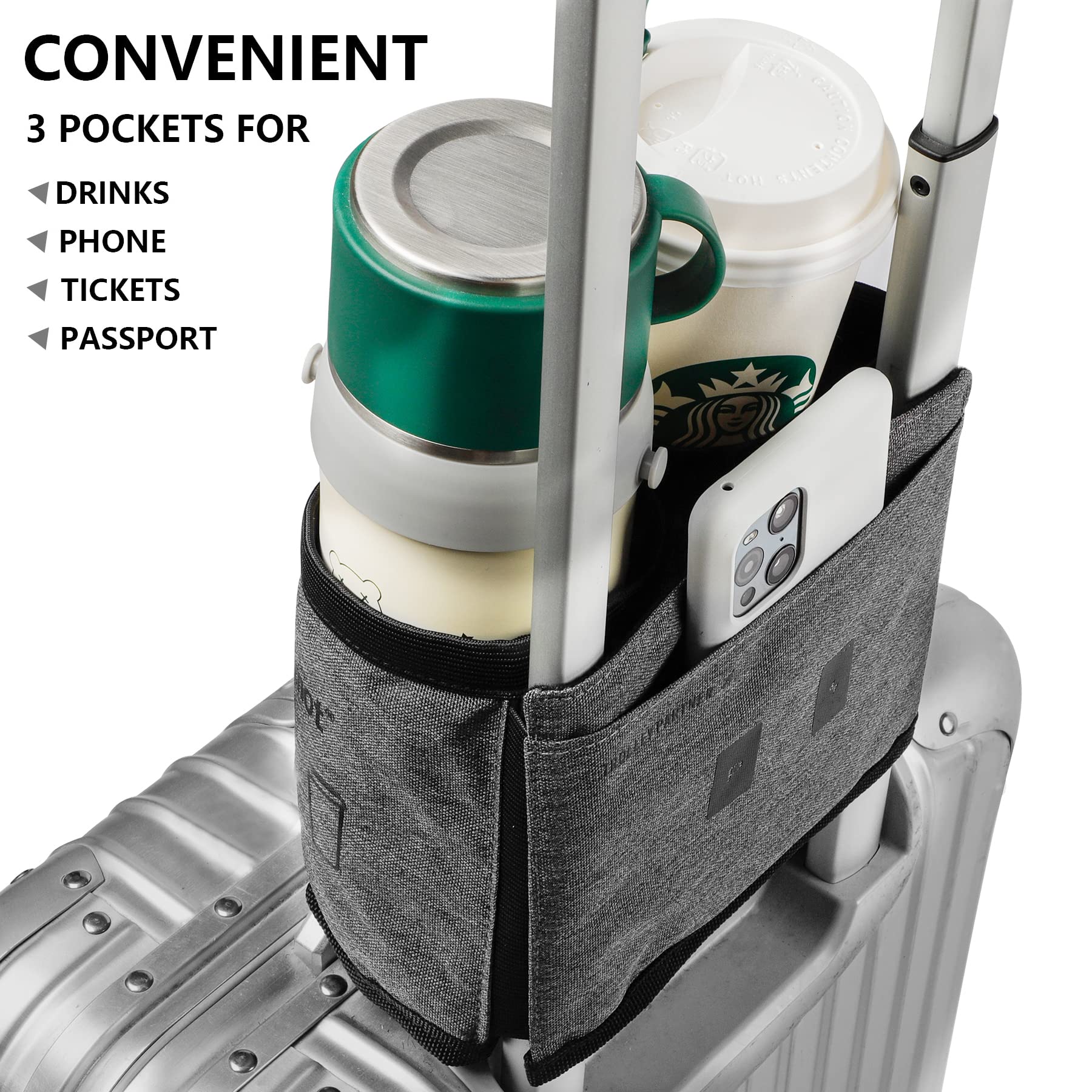 𝐅𝐢𝐭𝐬 𝐌𝐨𝐬𝐭 𝐋𝐮𝐠𝐠𝐚𝐠𝐞 𝐇𝐚𝐧𝐝𝐥𝐞𝐬: Our cup holder is designed to fit most roll-on suitcase handles, making it easy to use and convenient for any traveler. You can adjust the magic tape to fit your luggage handles. Notice: This suitcase drink holder doesn't fit the single-tube rolling suitcase or wide handle suticase.