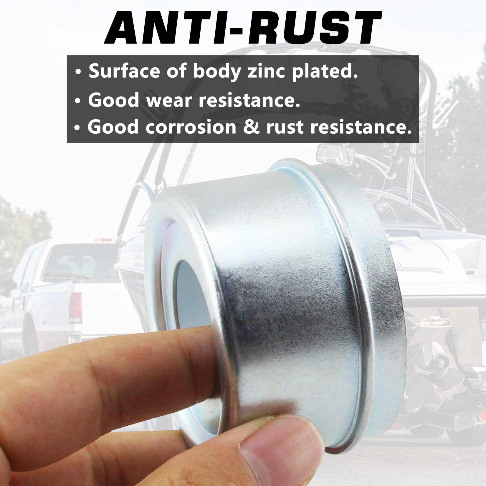 【HEAVY DUTY & ANTI-RUST】- These trailers dust caps are made of high quality carbon steel and rubber, surface zinc-plated, strong and durable, not easy to deform, anti-corrosion & anti-rust, long-term service for your Trailer.