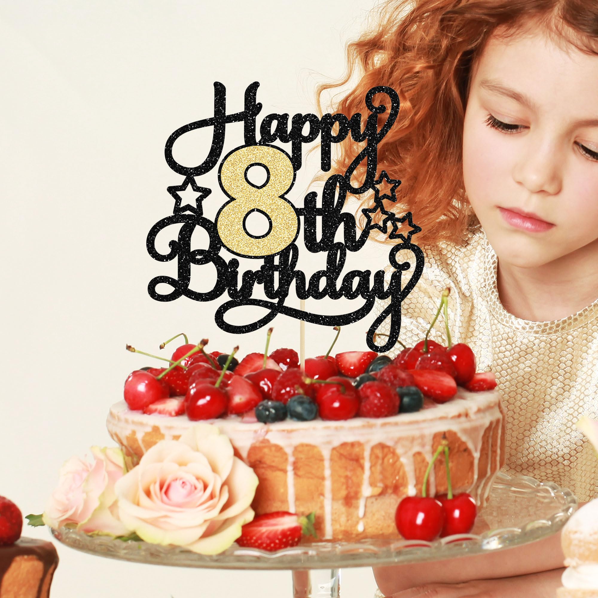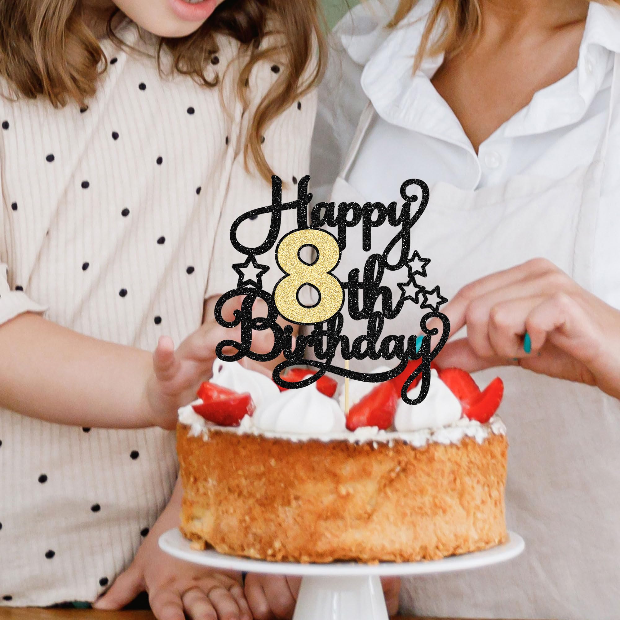 【Happy Birthday Party Supplies】: 1Pc Happy 8th Birthday Cake Topper is perfect for happy 8th birthday theme party, cheers to 8 years theme party, 8 fabulous theme party, happy 8th birthday anniversary theme party cake decorations, they will make your cupcake more attractive and bring the fun to your party, make your guests fall in love with them!