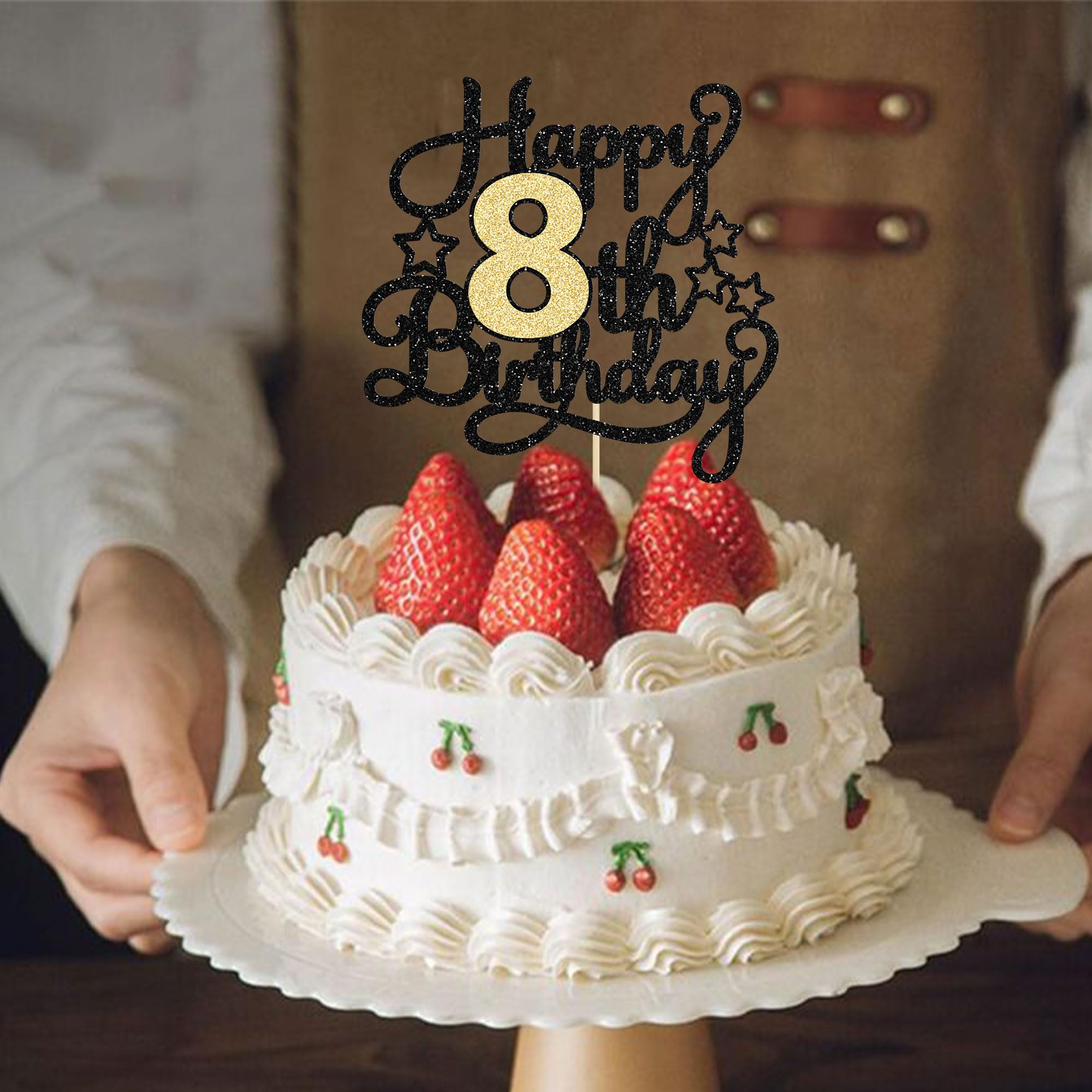 【Package Included】: 1Pc Happy 8th Birthday Cake Topper. This Happy 8th Birthday Cake Topper is very nice and enough quantity for your use. Perfect for Happy Birthday theme party!