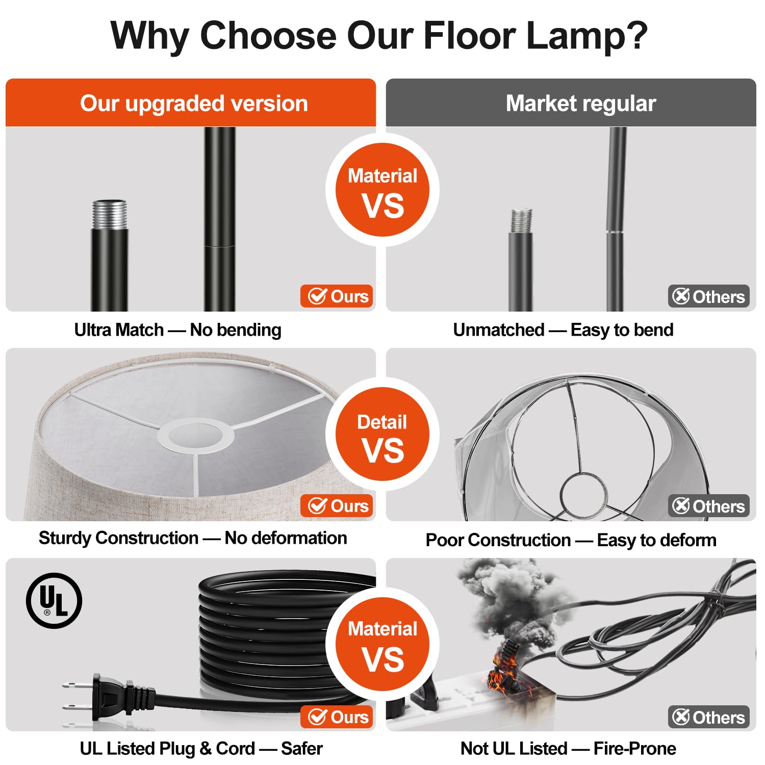 [3 Years Quality & Customer Services] - We offer a 3 year warranty and we proudly stand behind all of our products 100%. If your lamp has any defect or stops working within 3 years, we help you troubleshoot or send a whole new product. ( If you have any problems with our standing lamp, please be sure to let us know and we will reach you at the soonest and help you)