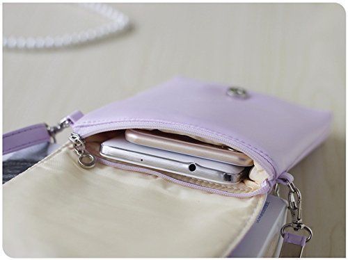 1 main zippered compartment for phone, 1 zippered compartment at the back fit for cards keys cash and coins. With a removable adjustable long strap, this purse can be used as crossbody bag, shoulder bag with the shoulder strap, also can be used as handbag, wallet, purse, clutch bag without the strap