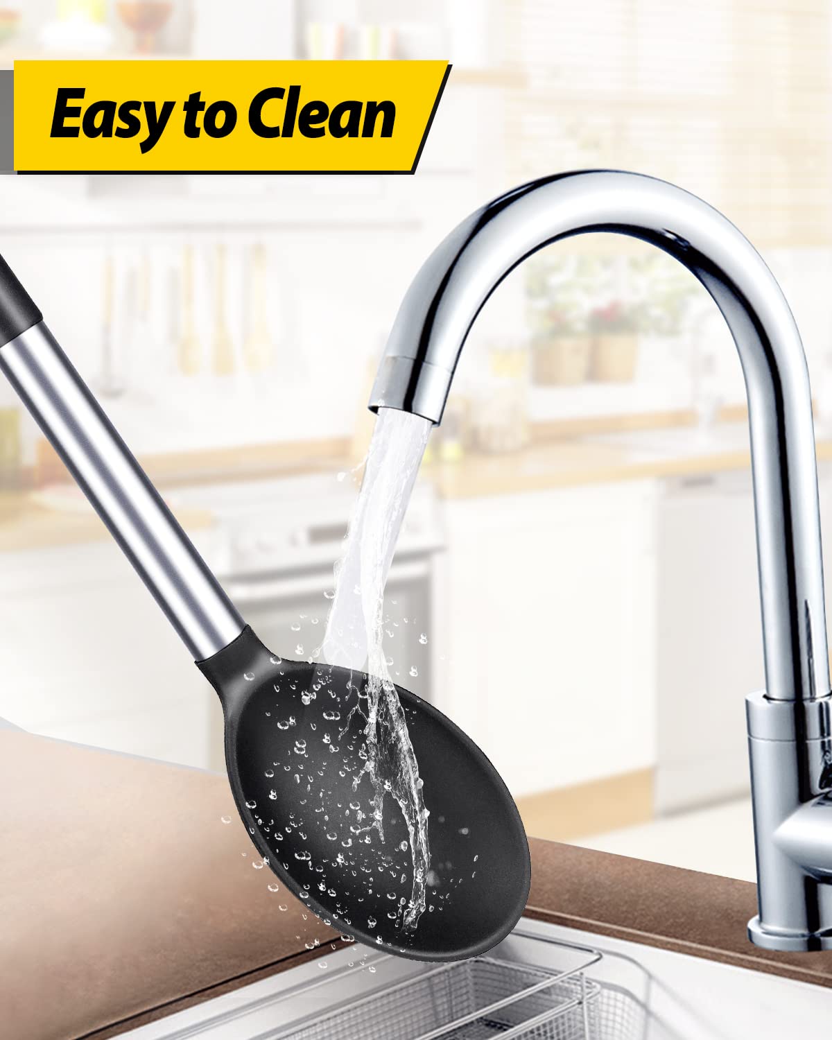 More Safe and Healthy : Our silicone spoons are made of food-grade silicone, free of BPA;Even at high temperatures, there is no need to worry about melting or deforming;And the soft silicone head won't scratch the coating, it can better protect your pot