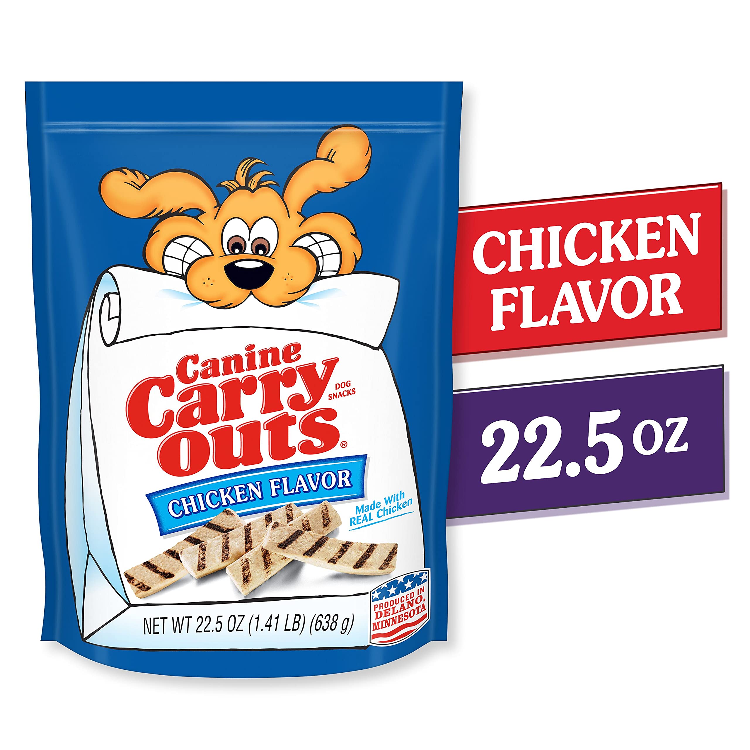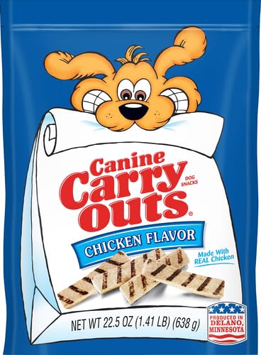 Contains one (1) 22.5-ounce bag of Canine Carry Outs Chicken Flavor dog treats