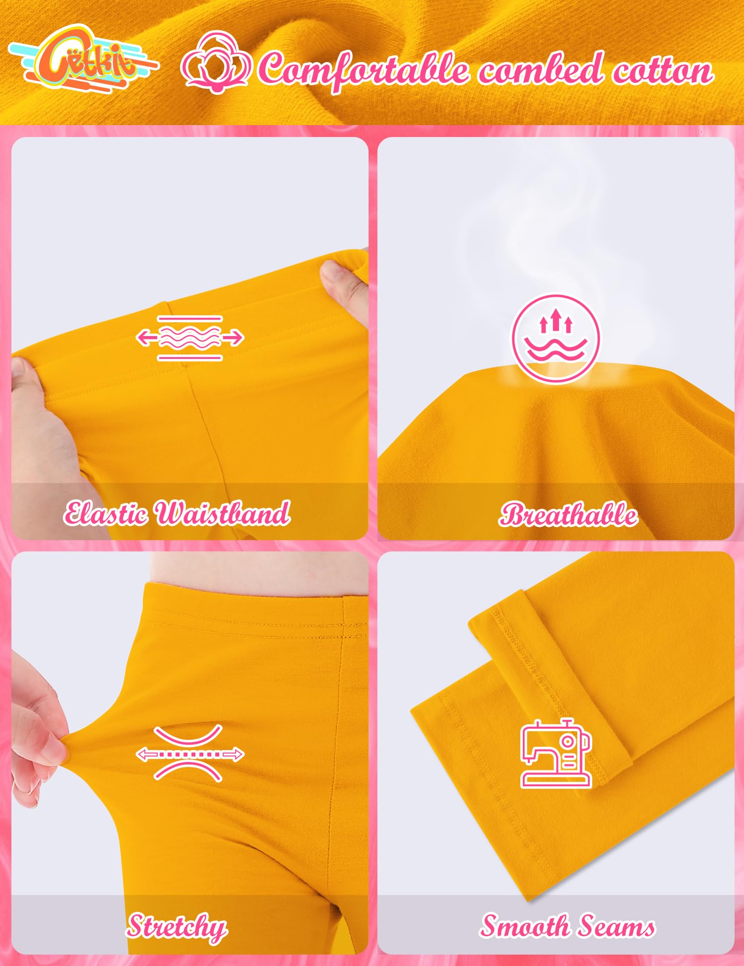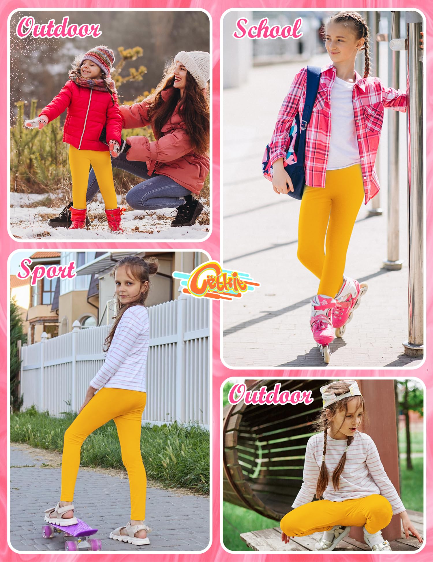 【Easy to Care For】 These leggings for girls are easy to care for. CETKIT girls Yellow leggings are machine washable and dryable, and they do not fade easily. 2t girls leggings maintain their original color and appearance even after washing and drying. They are not just a gift for kids, but also allow children to enjoy the comfort of sports! Yellow toddler leggings are a convenient and practical addition to any girl's wardrobe.