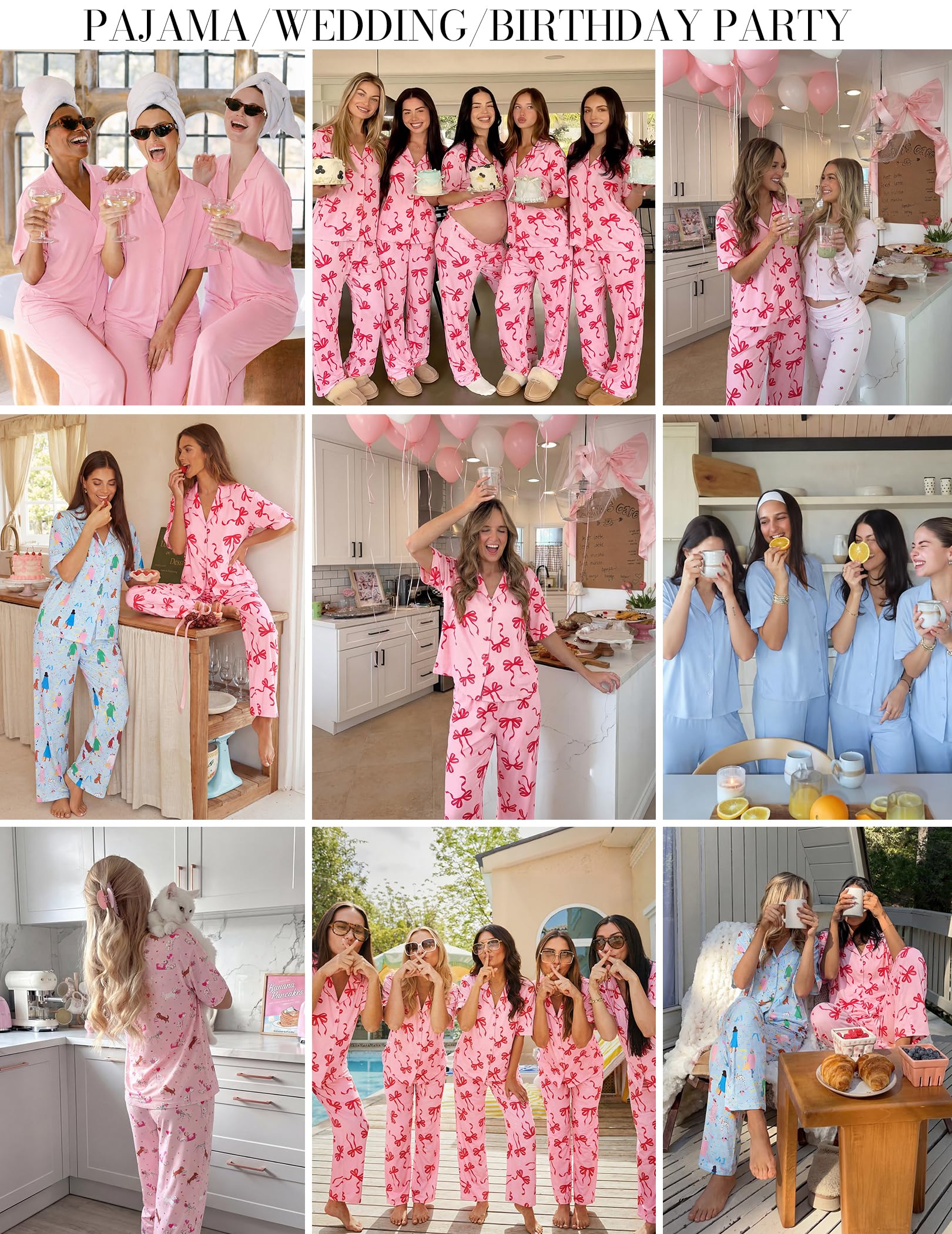 VERSATILE TWO PIECE SET: Perfect for sleepwear, loungewear, maternity, and hospital stays.And it is also great for lounging, party pajamas, bridal party, girls day,wedding pajamas,honeymoon,travel.The classic design suits all seasons and provides both style and functionality