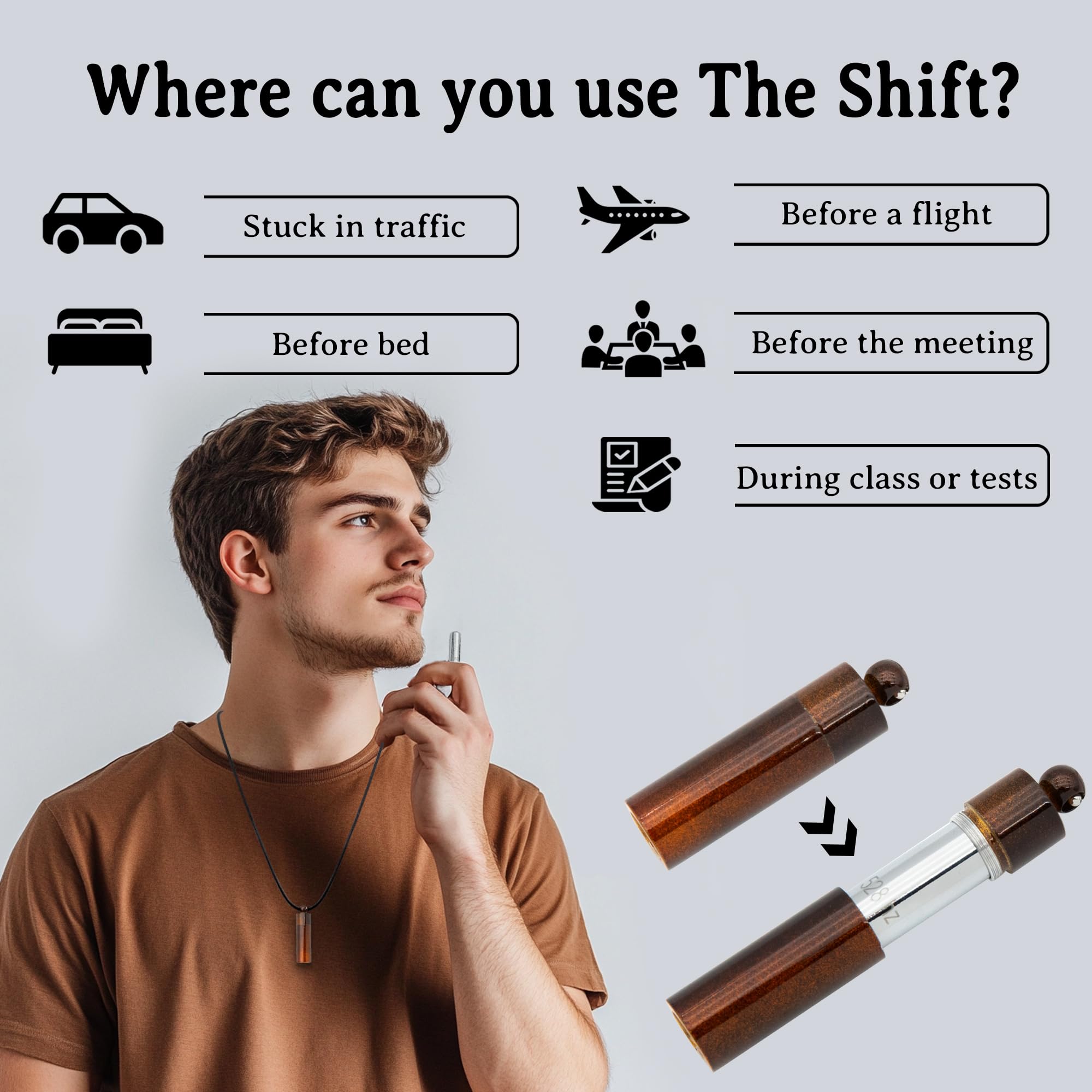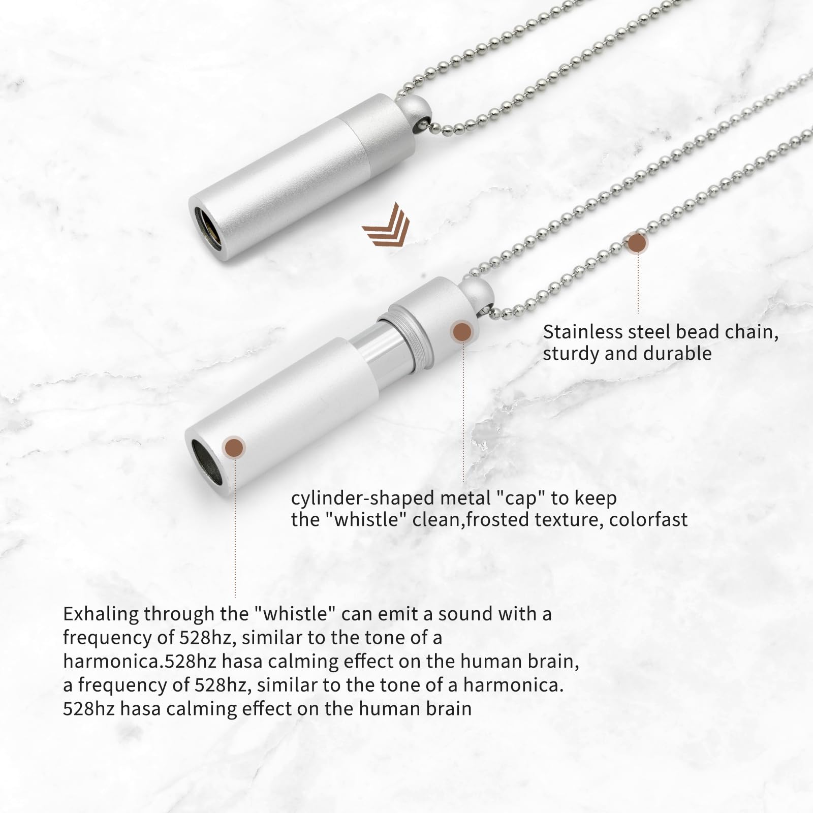 FIND INNER PEACE THROUGH REPETITIVE BREATHING: Our Necklace Works By Naturally Slowing Down Your Breath. inhale through the nose for 3 seconds and hold for 5 seconds, then exhale slowly using the Breathing Tool, blowing a smooth, long tone and having for 6 to 8 seconds. This is one breathing cycle, and we recommend a minimum of 6 breathing cycles to achieve inner peace and release meaningless thoughts and anxieties