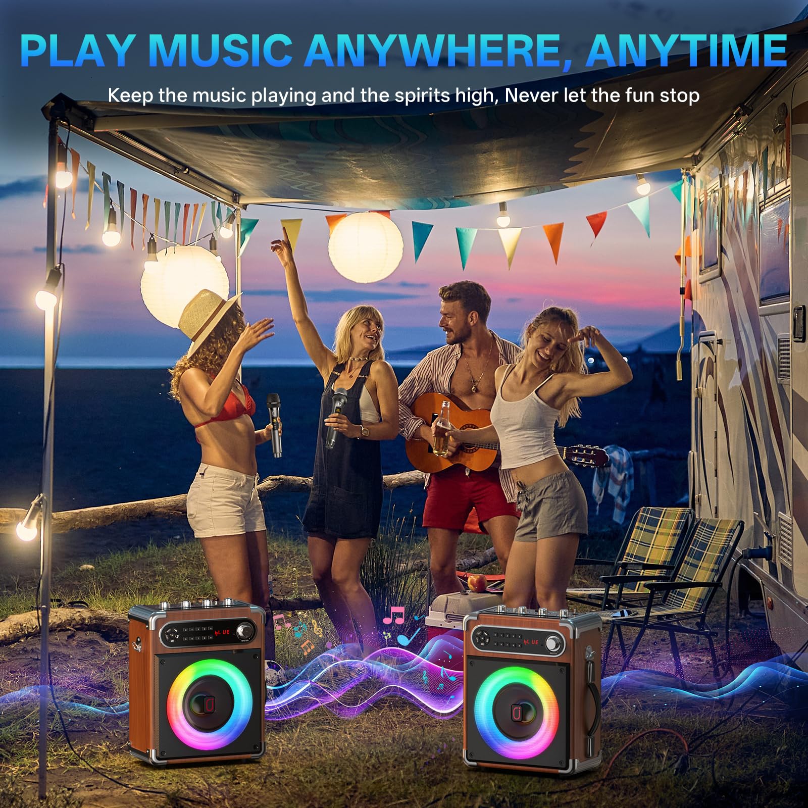 Clean vocal recording + FM, gift-ready design — Record crisp vocals to USB/TF for practice, feedback, or layering with backing tracks later. Built-in FM radio keeps you tuned to local stations. Available in sleek black or warm wood finish—thoughtful and instantly fun as a gift.