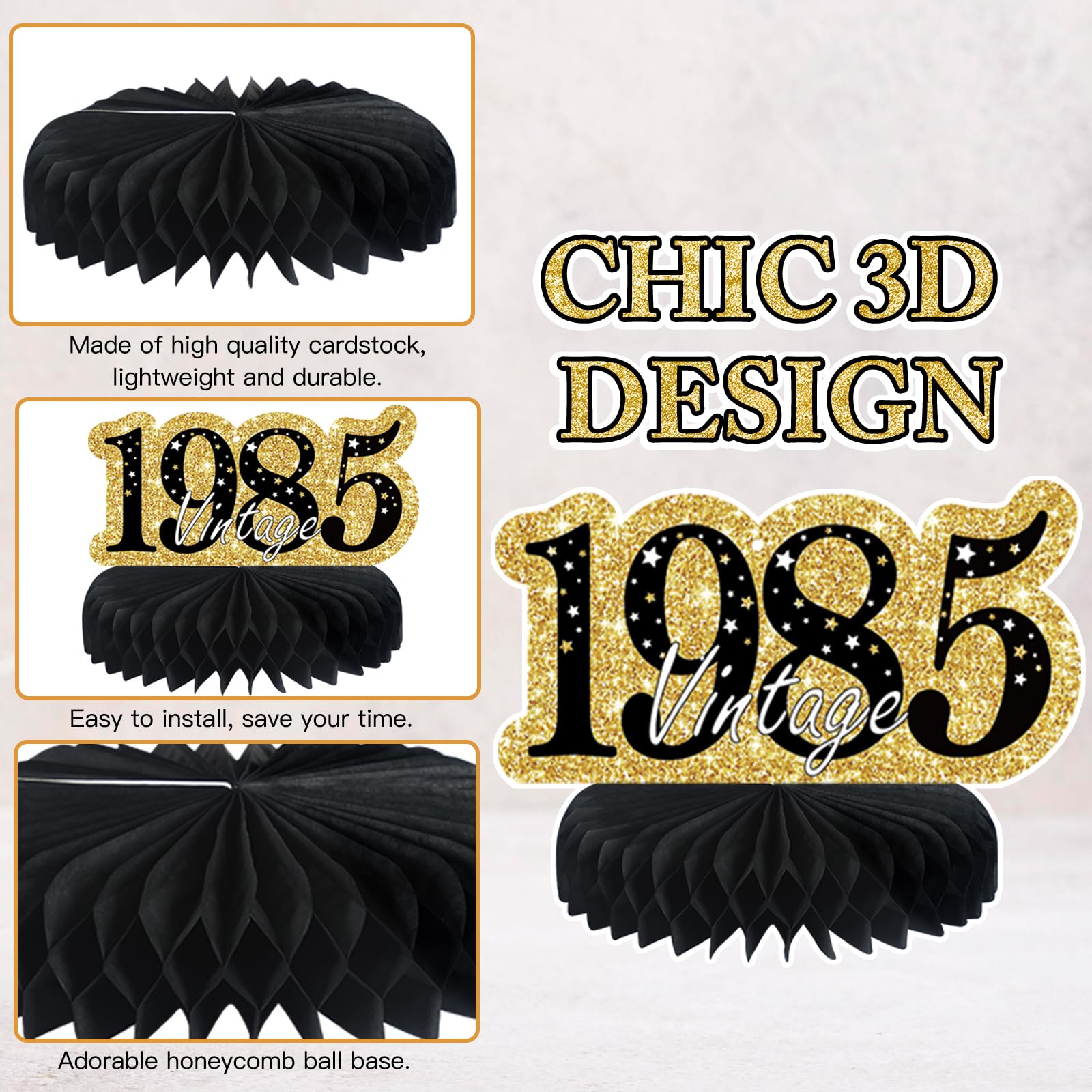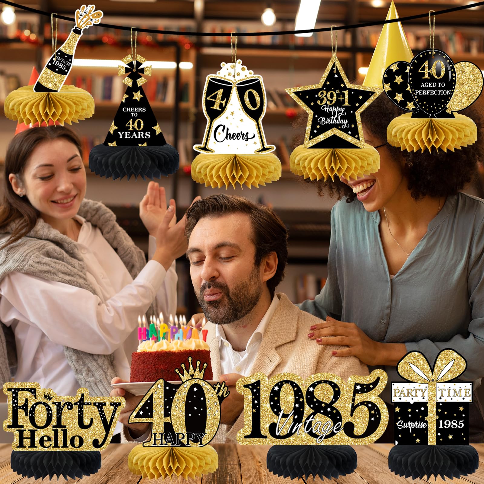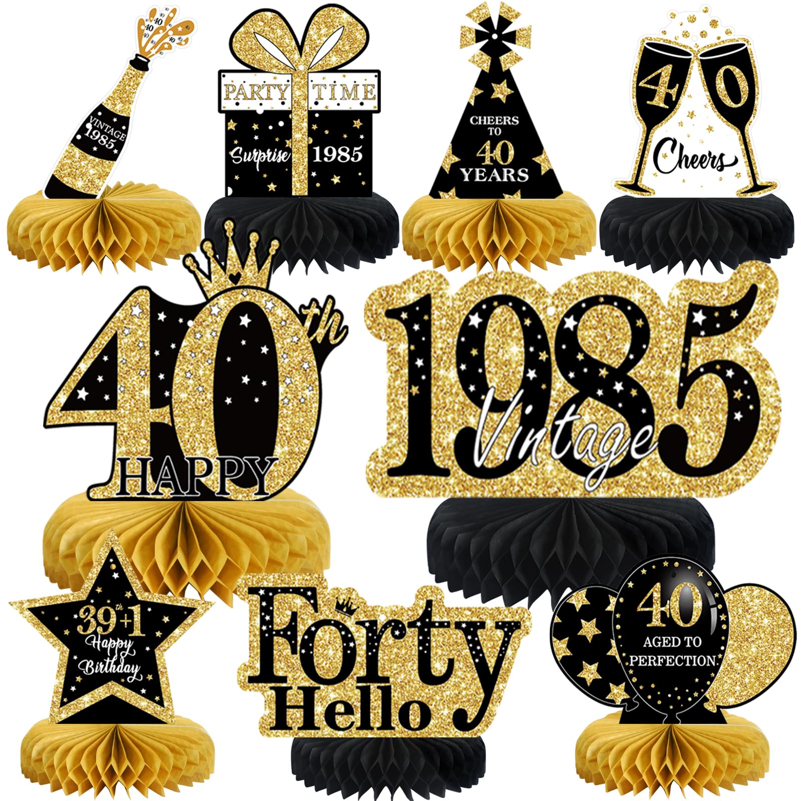 [You will get] - 9 pcs black gold 40th birthday decorations honeycomb table centerpieces for women men, it contains 9 patterned cardboards and 9 paper honeycombs (4 black and 5 gold),and matching lanyards. These chic 40th birthday table decorations are enough to decorate your themed party.