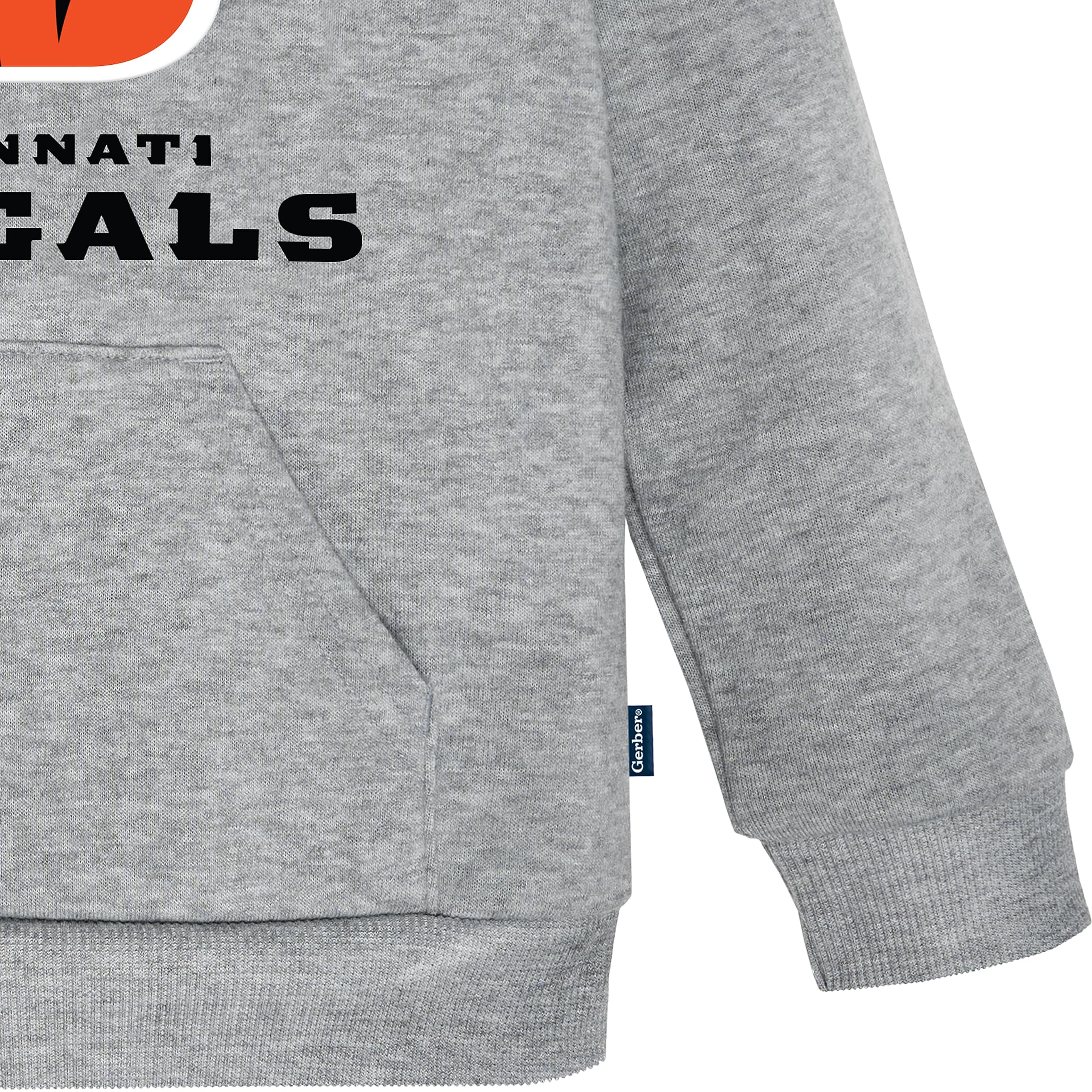 Description Even the smallest family members can get in the football spirit with our officially licensed NFL by Gerber Hoodie. This hoodie is made to keep your little one comfortable throughout the entirety of the game or while playing with friends. Featuring an applique team name and logo front and center, cuffed sleeves and banded bottom, this is the perfect hoodie for infants and toddlers, as it may be worn comfortably all on its own or layered with a shirt for extra warmth. The hoodie also has a functional front pocket to keep those hands warm when it's a little chilly outside. This team hoodie is machine washable to take care of any game-time spills with the utmost ease and convenience. Contains one Hoodie.