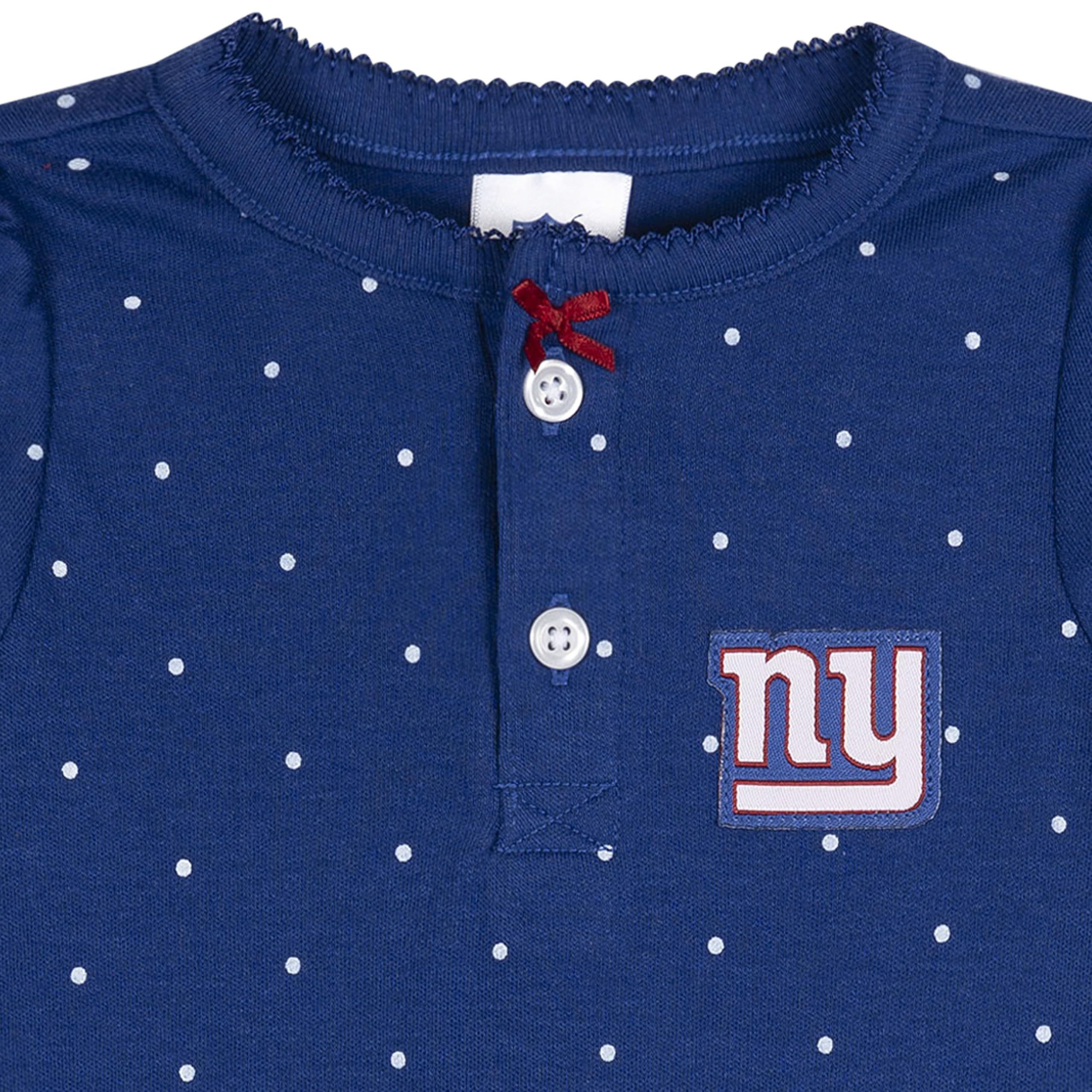 Description Wrap your little one in cozy comfort and team pride with this NFL baby girl coverall pajama. Designed with full-length sleeves and legs, this one-piece provides all-over warmth for cooler days and nights. Itβs made from thick, high-quality interlock fabric thatβs soft to the touch and built to last through play, rest, and repeat. Snap leg closures make diaper changes quick and simple, while sweet details like white polka dots and a delicate bow at the neckline add a charming, girly finish. A small team logo brings a subtle touch of fan spirit, making this baby girl coverall a cozy game day favorite or thoughtful baby shower gift.