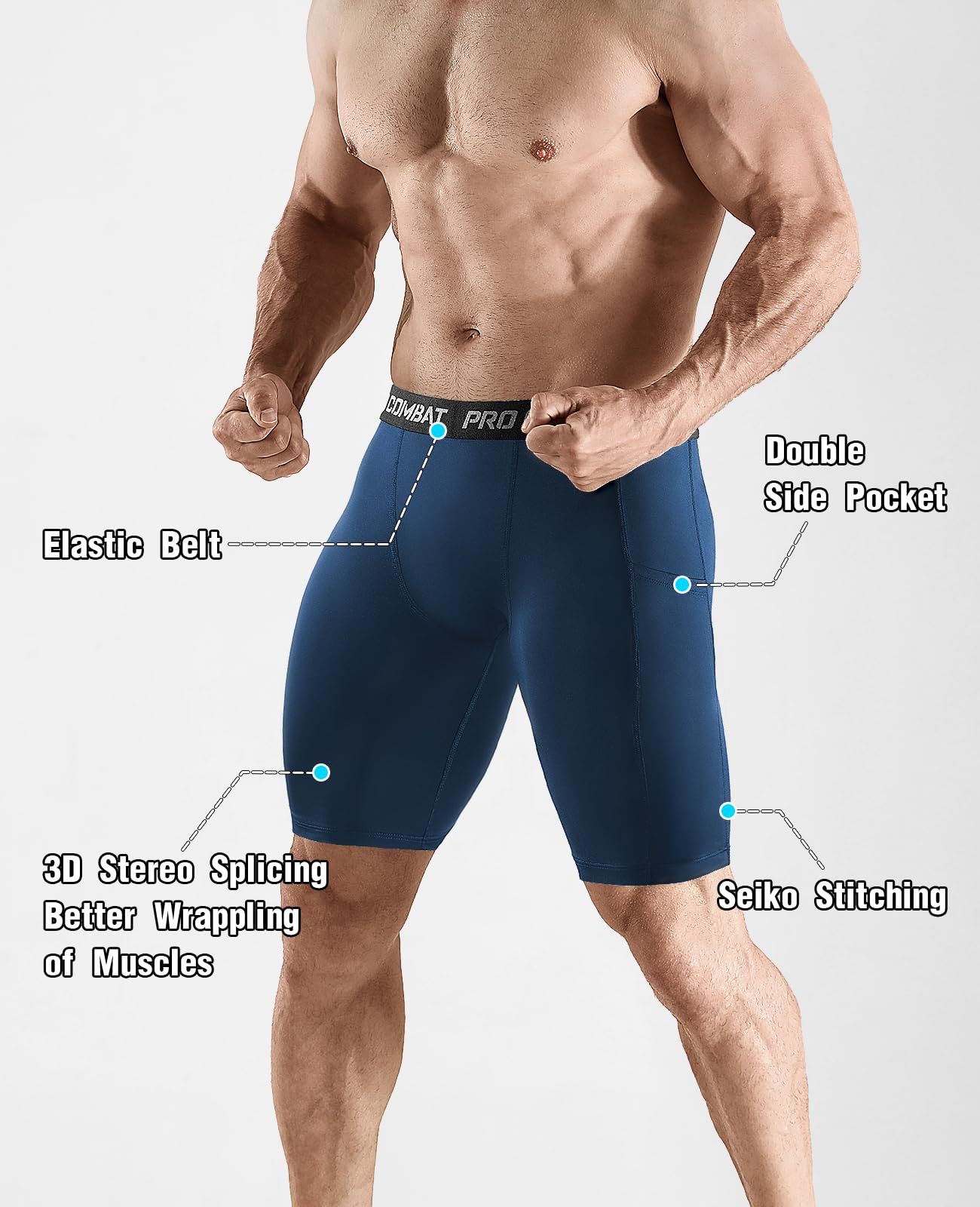 【Compression Support】Our mens compression shorts feature an ergonomic design and 4-way stretch fabric to provide optimal support and strong compression for your hip and thigh muscles, stabilizing your muscles during exercise, accelerating post-exercise muscle recovery, and reducing lactic acid buildup.