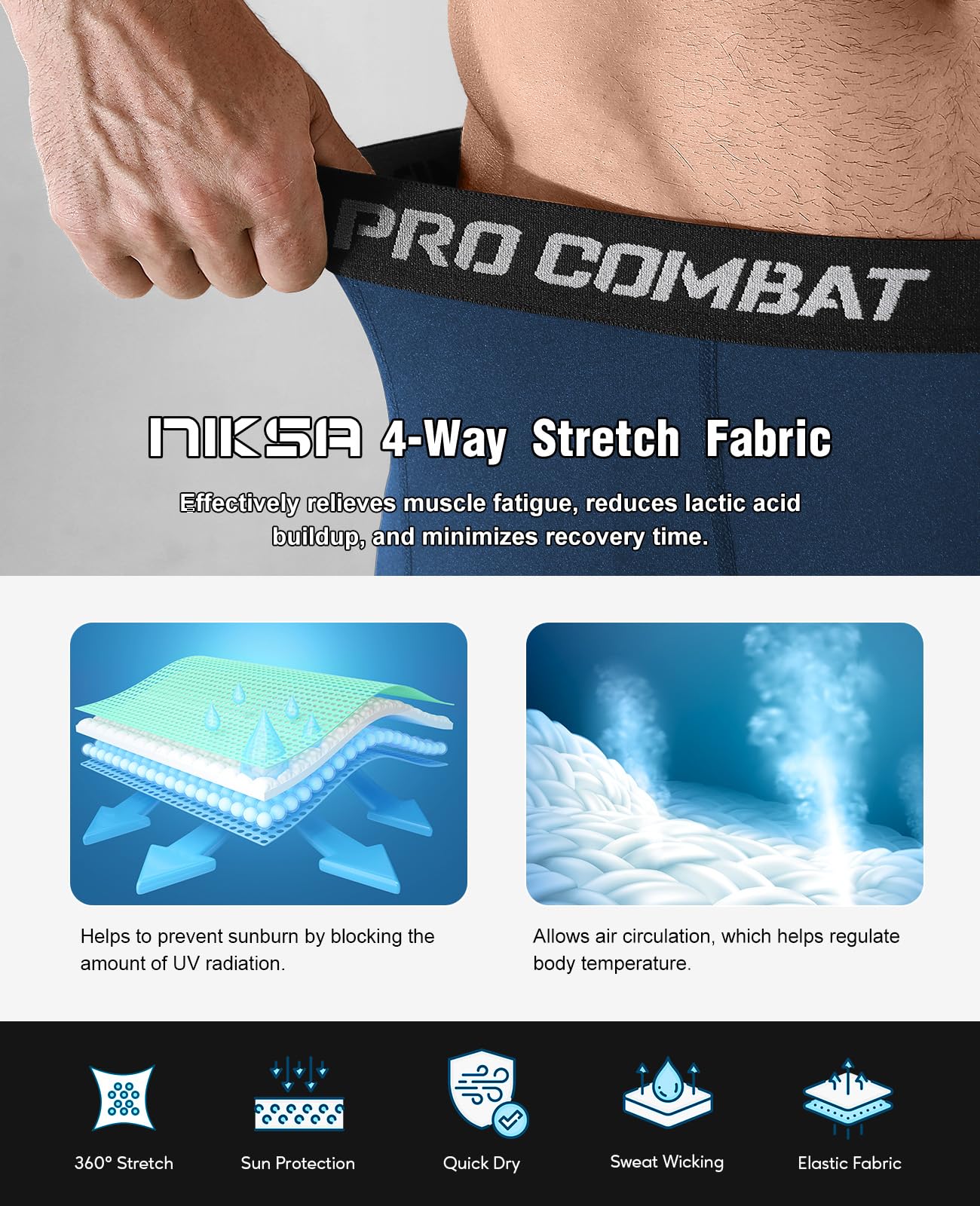 【Designed for All Sports】Compression underwear provide sun protection and are suitable for all weather sports such as: exercise, running, basketball, fitness, biking, baseball, tennis, weight training, surfing, squats, soccer, etc.
