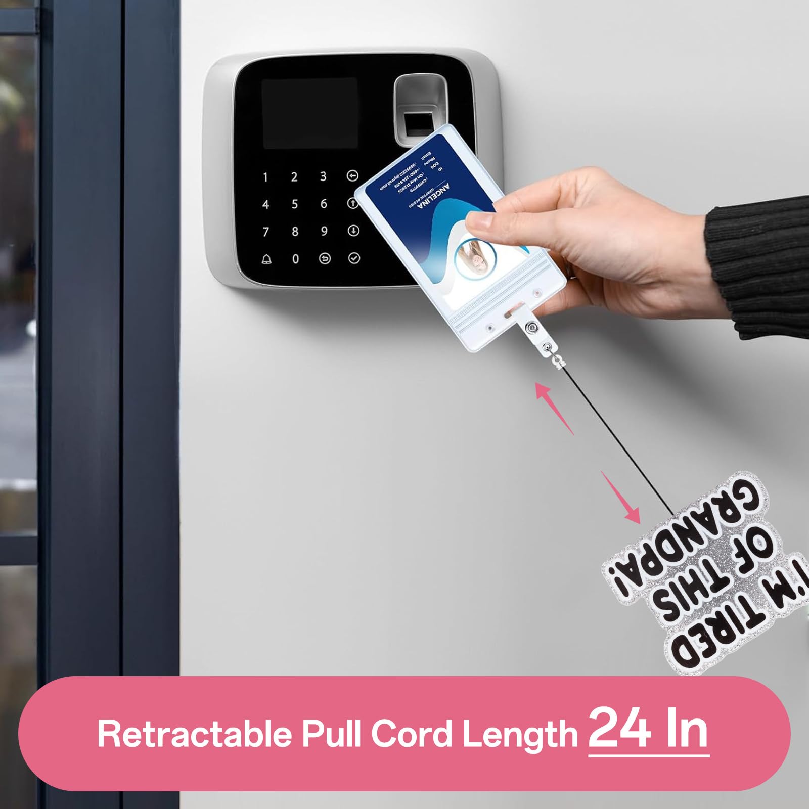 【Retractable Cord】The retractable reel cord extends a maximum of 24 inches, more than enough to reach comfortably as far as your arm can reach. The flexible retractable feature enables you to effortlessly display your badge without removing it, enhancing your efficiency at work.