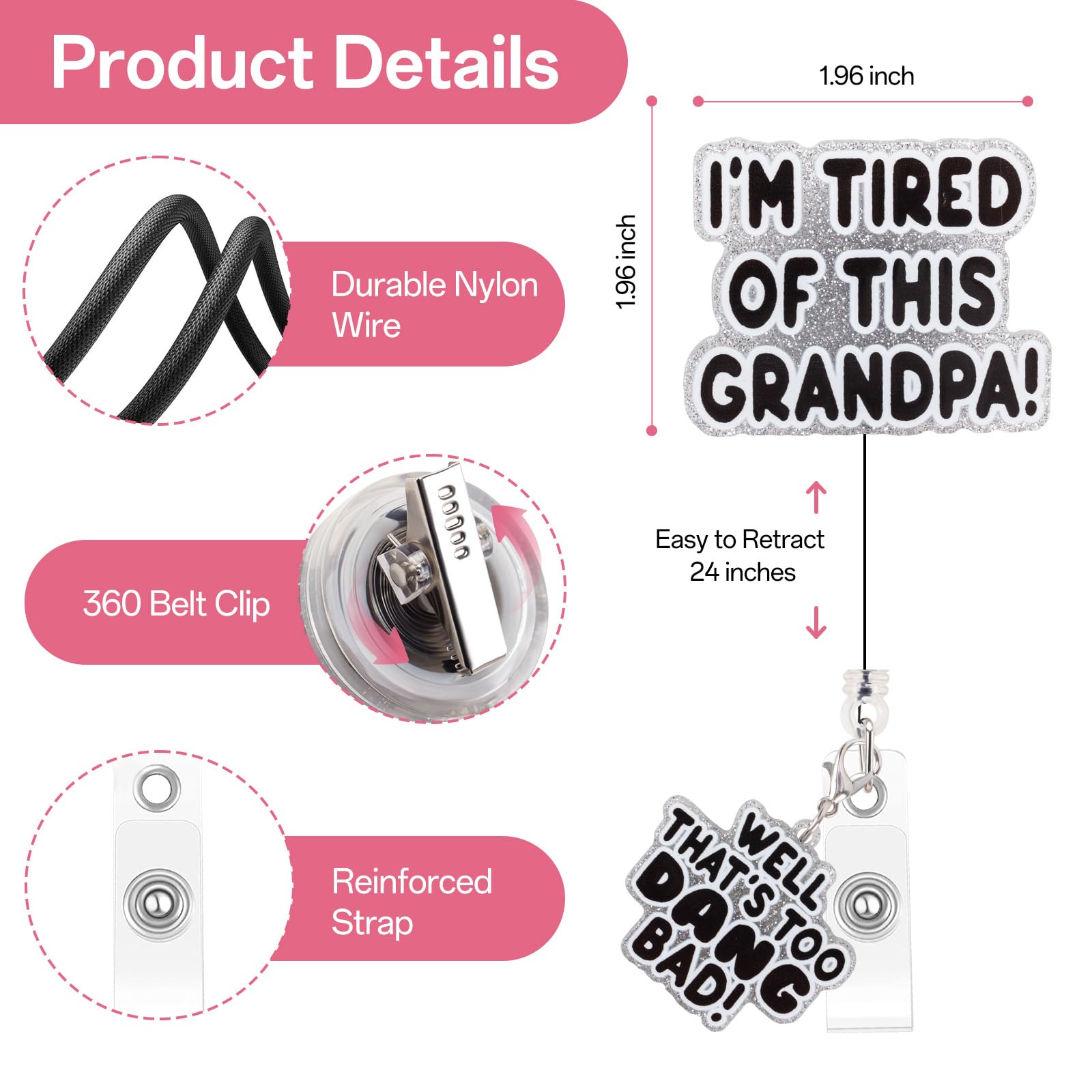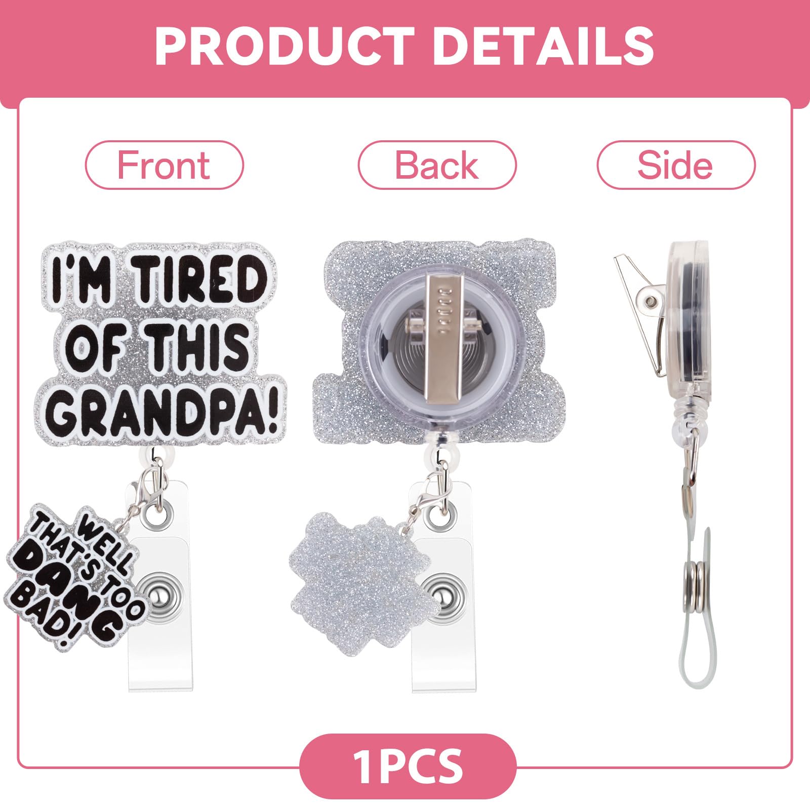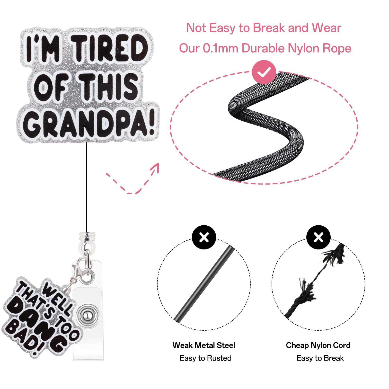 【Playful and Fun Design】: This badge scroll features a fun and lighthearted message "I'm Tired of This Grandpa! Well too DANG Bad," making it a perfect conversation starter and a quirky addition to your badge collection.