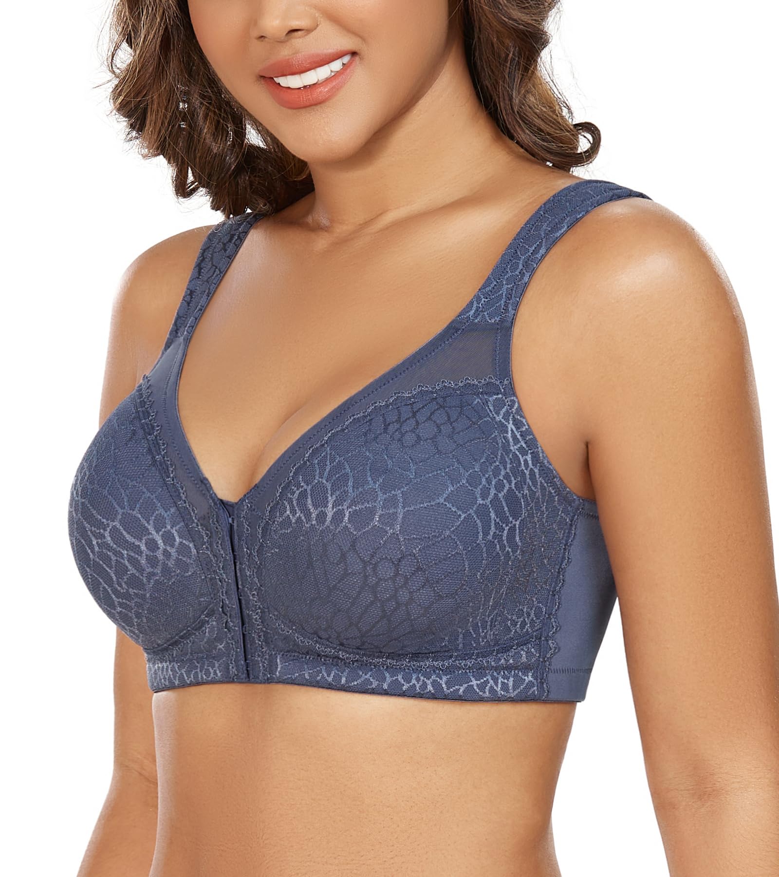 Front Close Bra: Great for post-surgical wear or big busted women. Convenient front closure style and thoughtful design - different number of hooks for different sizes, put on and take off easily. More sturdy and convenient hook, let you wear this front closure bra handily, save your time and free your hand.